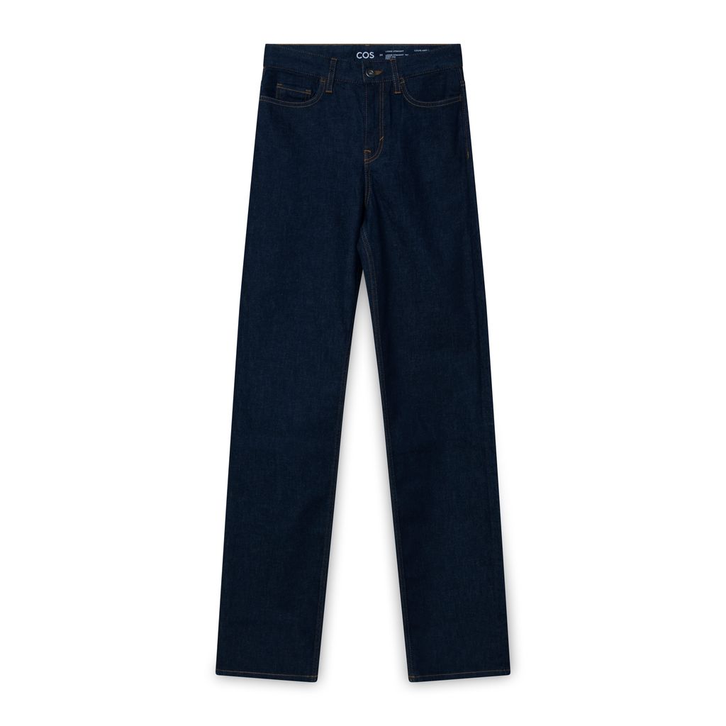 COS Straight Leg Denim Jeans feature wide leg silhouette, front zipper closure with button fastening.