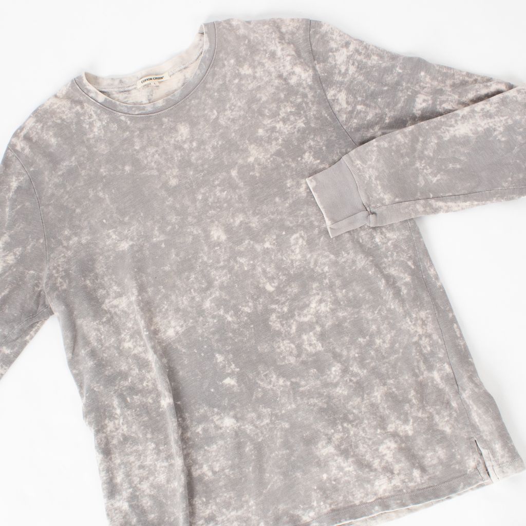 Soft to the touch with an edgy bleach treatment, this acid washed long sleeve from cotton citizen is an easy way to spice up a basic look. Features all over bleach dye process, crew shaped neck, relaxed fit, and rib knit bands at wrists.