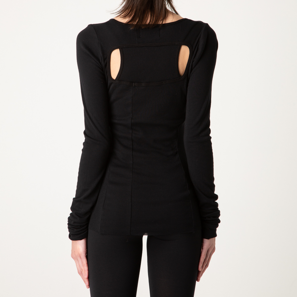 This window tee is made from 100% cotton modal. It is accentuated with an asymmetric seam down the front and back pane, arched side panels, sewn in tank insert, and trademark Dreamhouse bound window. All orders are made to order.
