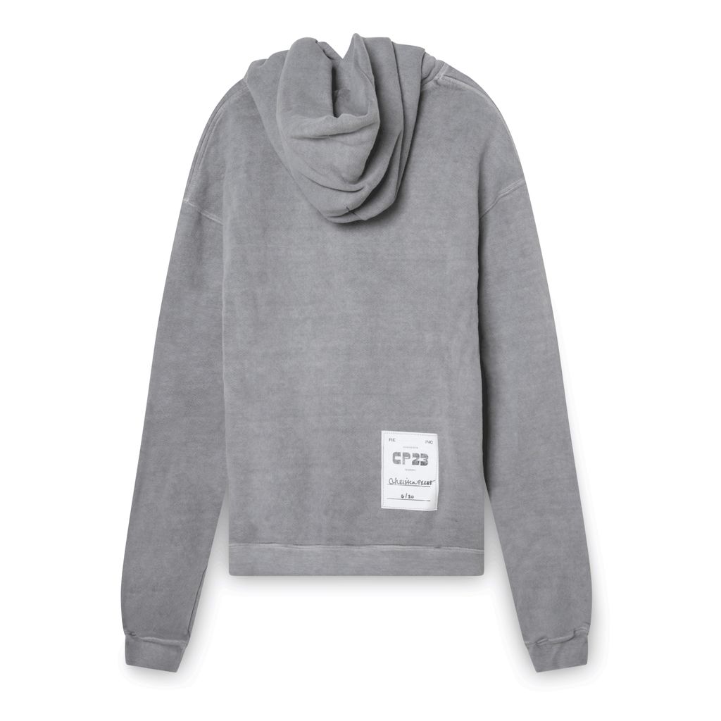 Fabrication: Original hoodie made by a woman-owned factory in Allentown, Pennsylvania. Enzyme washed for softness. The tyvek label was sewn in LA and signed by Christen press with a permanent fabric marker.