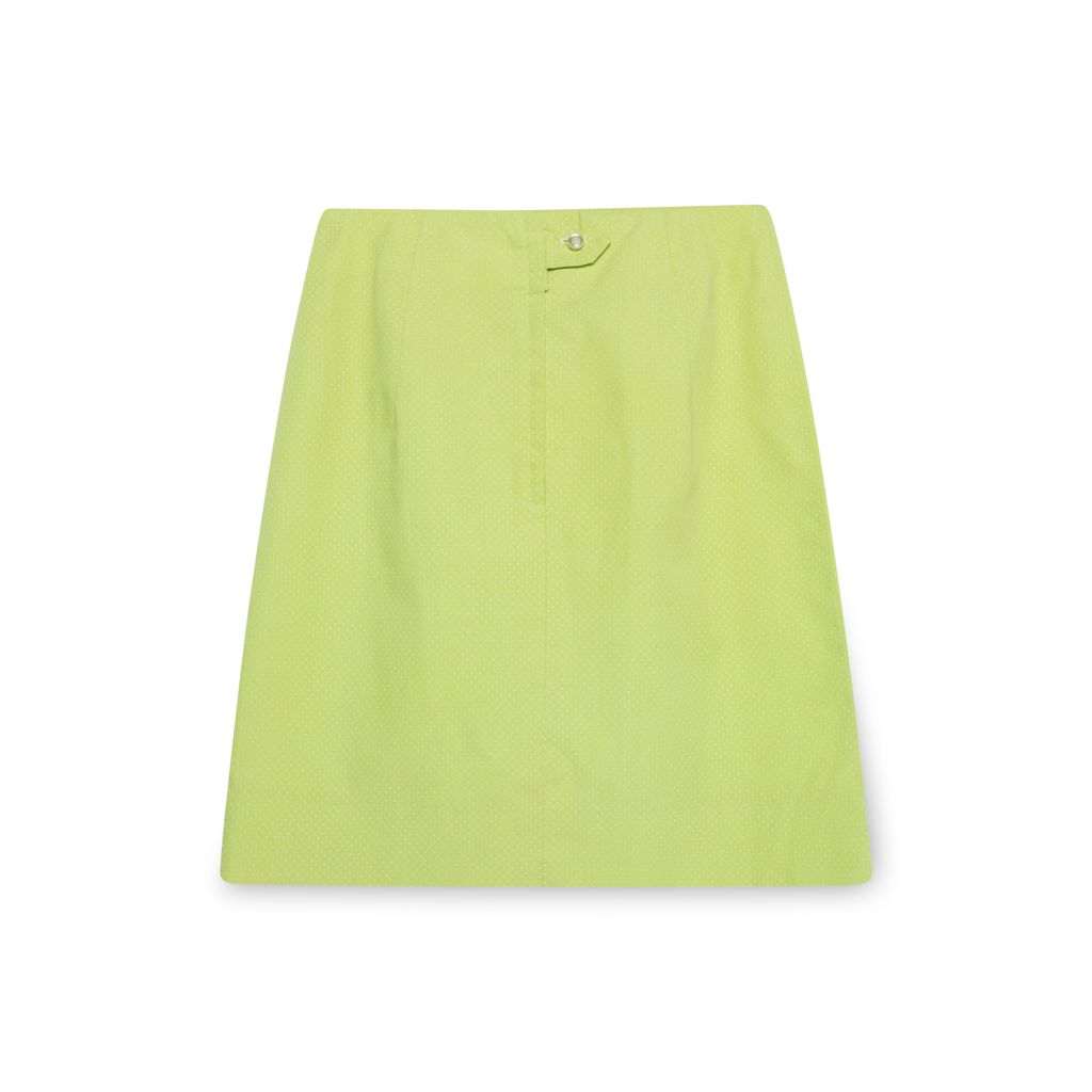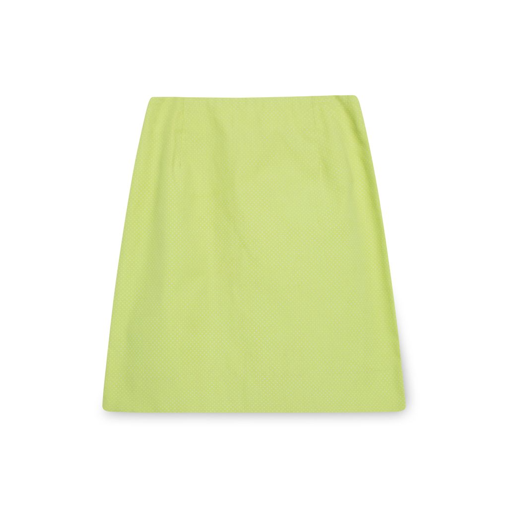 Cracker Jax Green Polka Dot Skirt features high waist, back zipper closure, and white polka dot design.