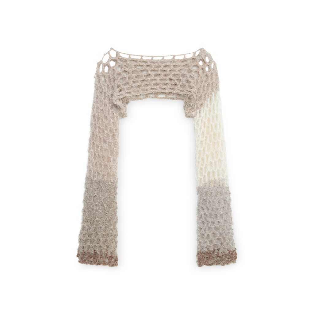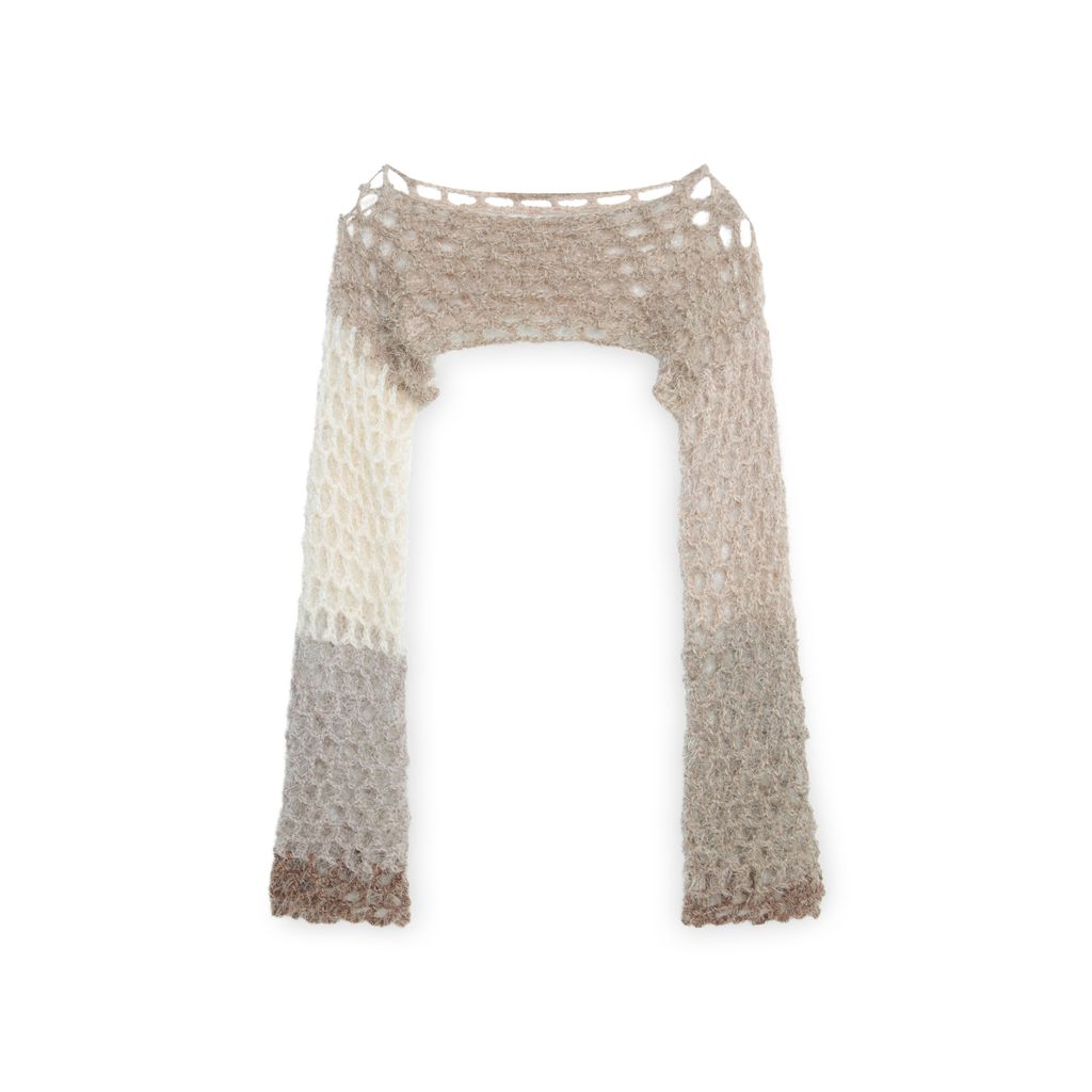 Crochet Sweater 02 features brown toned fuzzy open crochet bolero design.