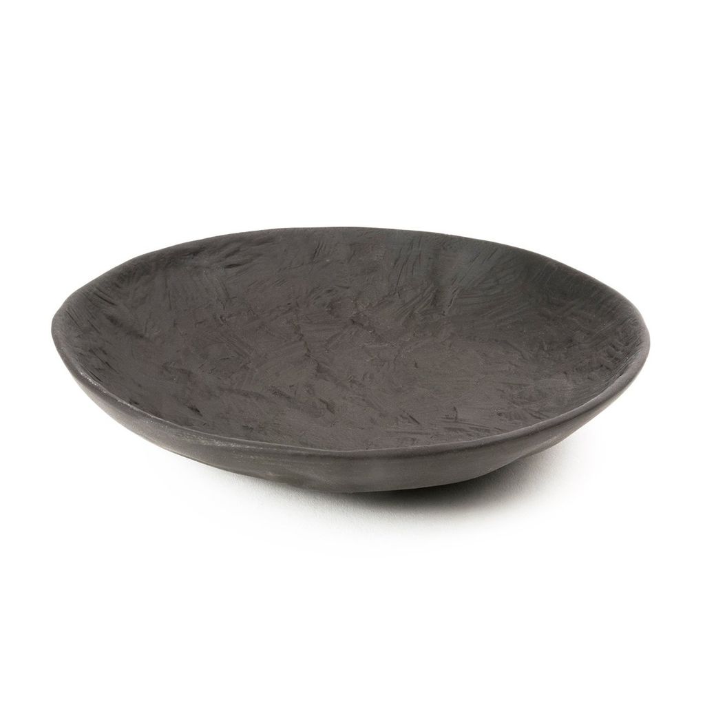 1882 Ltd.'s interpretation of black basalt, Crockery is a collection of fine bone china tableware slip-cast from plaster models carved by hand, with glazed interior for functionality and raw exterior reflecting the modest surface texture of the plaster original. Using the tools of a stonemason Lamb chips and carves a solid block of plaster to make a series of tableware, the design of each formed quite simply out of their own making.