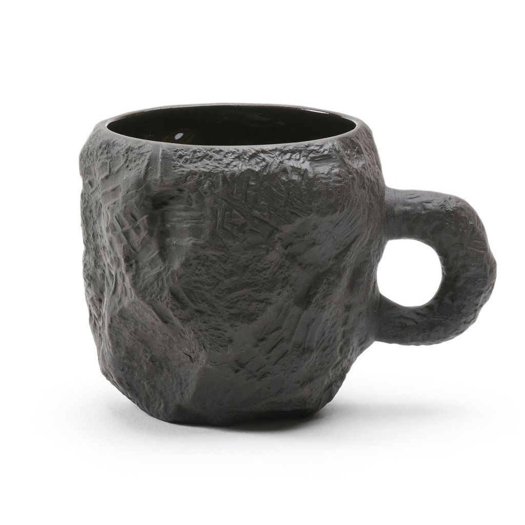 1882 Ltd.'s interpretation of black basalt, Crockery is a collection of fine bone china tableware slip-cast from plaster models carved by hand, with glazed interior for functionality and raw exterior reflecting the modest surface texture of the plaster original. Using the tools of a stonemason Lamb chips and carves a solid block of plaster to make a series of tableware, the design of each formed quite simply out of their own making.