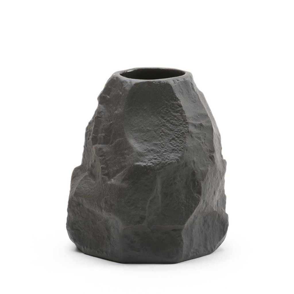 1882 Ltd.'s interpretation of black basalt, Crockery is a collection of fine bone china tableware slip-cast from plaster models carved by hand, with glazed interior for functionality and raw exterior reflecting the modest surface texture of the plaster original. Using the tools of a stonemason Lamb chips and carves a solid block of plaster to make a series of tableware, the design of each formed quite simply out of their own making.