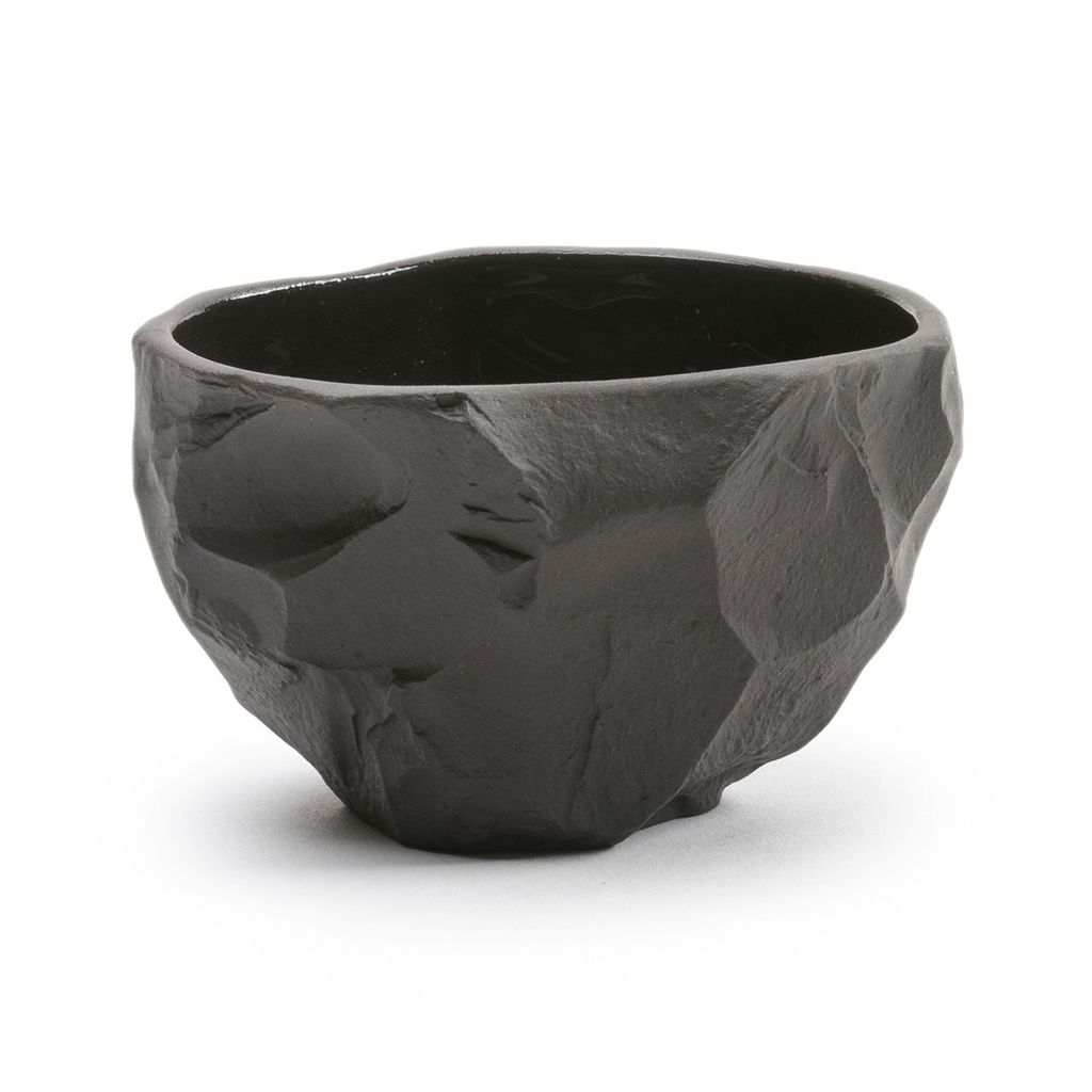 1882 Ltd.'s interpretation of black basalt, Crockery is a collection of fine bone china tableware slip-cast from plaster models carved by hand, with glazed interior for functionality and raw exterior reflecting the modest surface texture of the plaster original. Using the tools of a stonemason Lamb chips and carves a solid block of plaster to make a series of tableware, the design of each formed quite simply out of their own making.