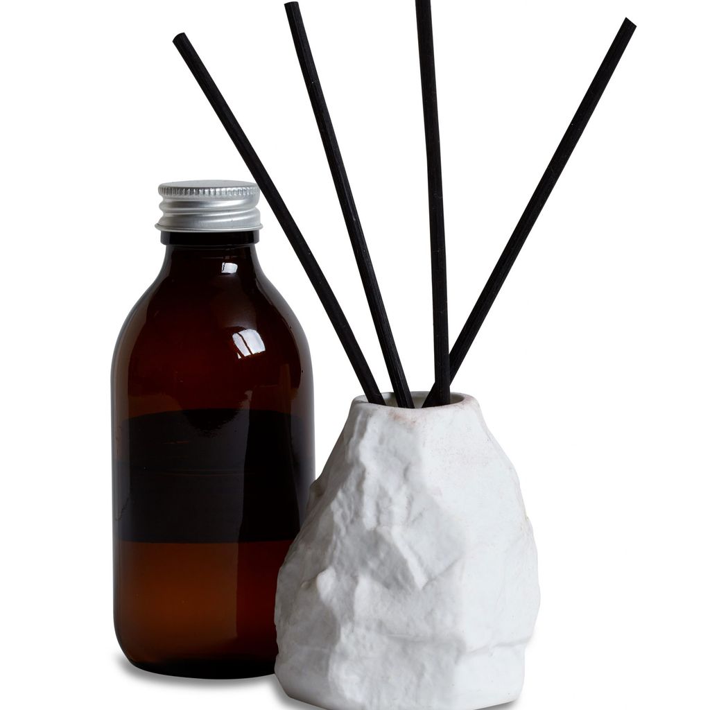 Notes of sandalwood, amber and earthy florals are steadily released over many months with our crockery Diffuser with Max Lamb.