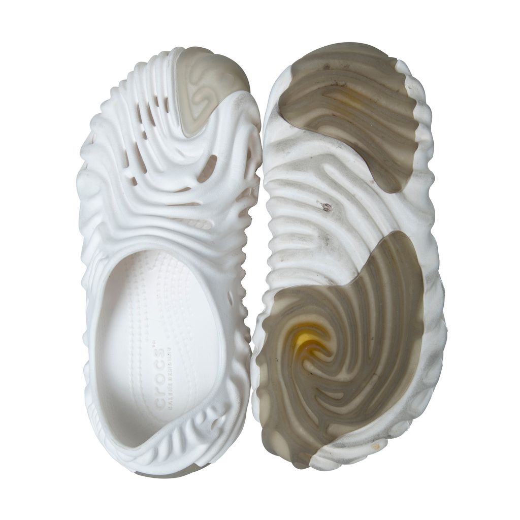 Crocs Pollex Clog features exo-skeletal look with dramatic, fingerprint-like concave ridges, and foam construction.