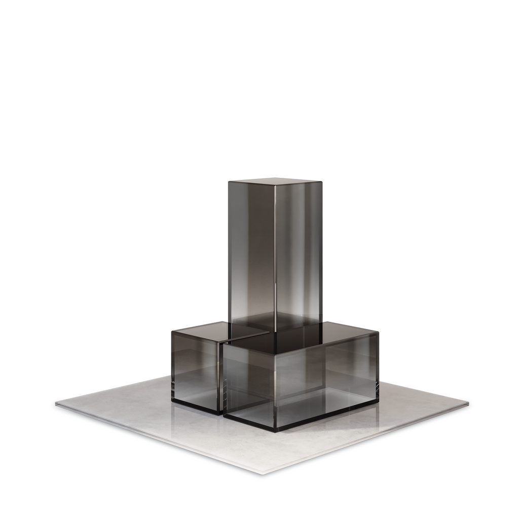 The Curiosité Collection is inspired by imaginary scenarios, playing with the several reflections of crystal glass surfaces, masterly handcrafted and enriched by sought-after mirror shade finish. The mirror finishes, hand-applied, provide an unexpected Trompe- l’oeil effect, creating a visual continuity where the objects of this composition blend flawlessly and disruptively. In this series, these imaginary rays are formally transposed into mirror shades, rigorously applied by hand on each piece, with a final effect able to twist the initial perspectives hierarchy and, by subtraction, draw the attention where the crystal translucency remains untouched by the mirrored hue.