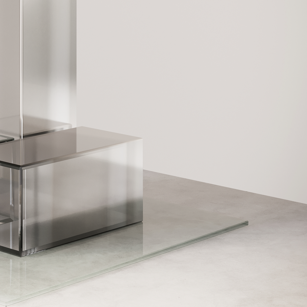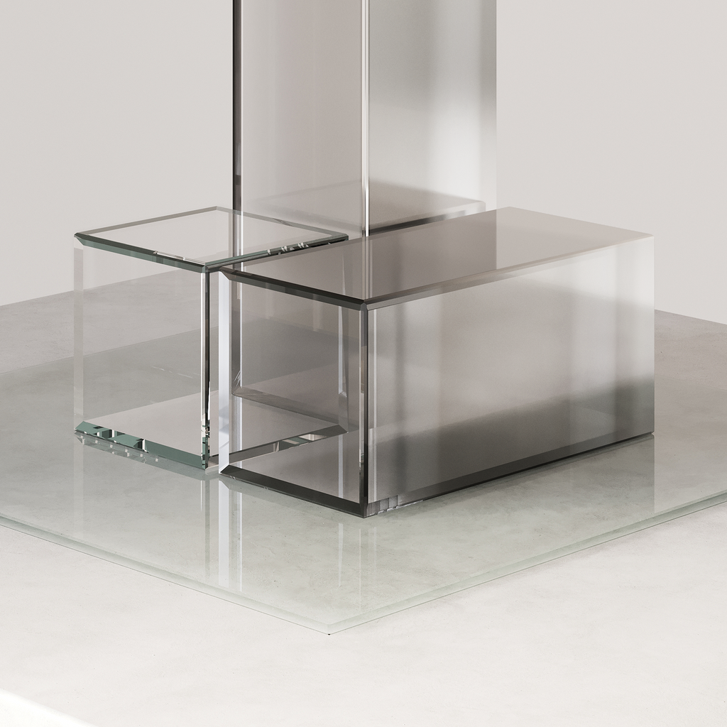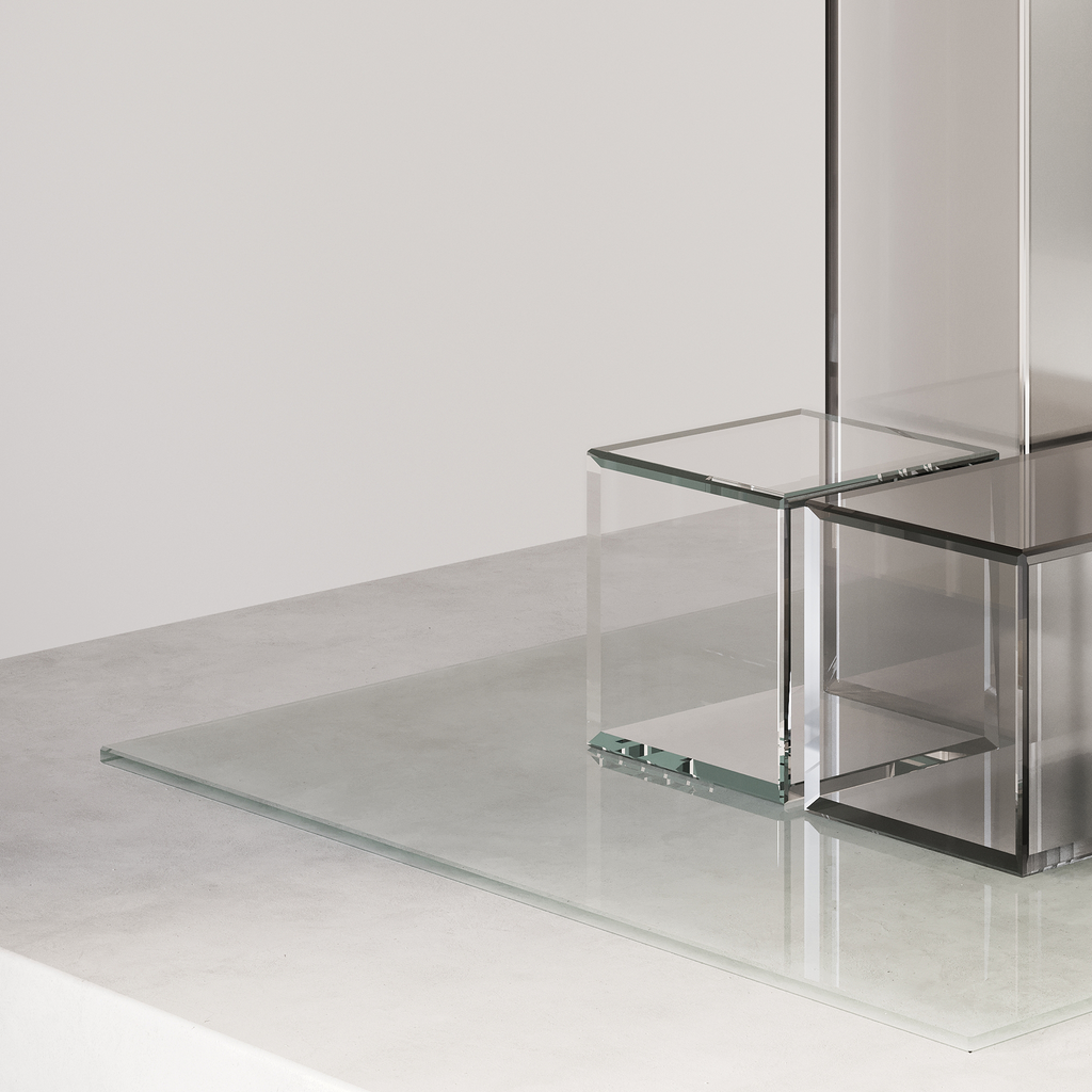 The Curiosité Collection is inspired by imaginary scenarios, playing with the several reflections of crystal glass surfaces, masterly handcrafted and enriched by sought-after mirror shade finish. These minimalist and plain volumes invite the observer to pursue more than one preferred point of view, on the hunt for that perfect intersection where shapes, translucent surfaces and mirror finishes provide an unexpected Trompe-l’oeil effect; creating a visual continuity where the objects of this composition blend flawlessly and disruptively.