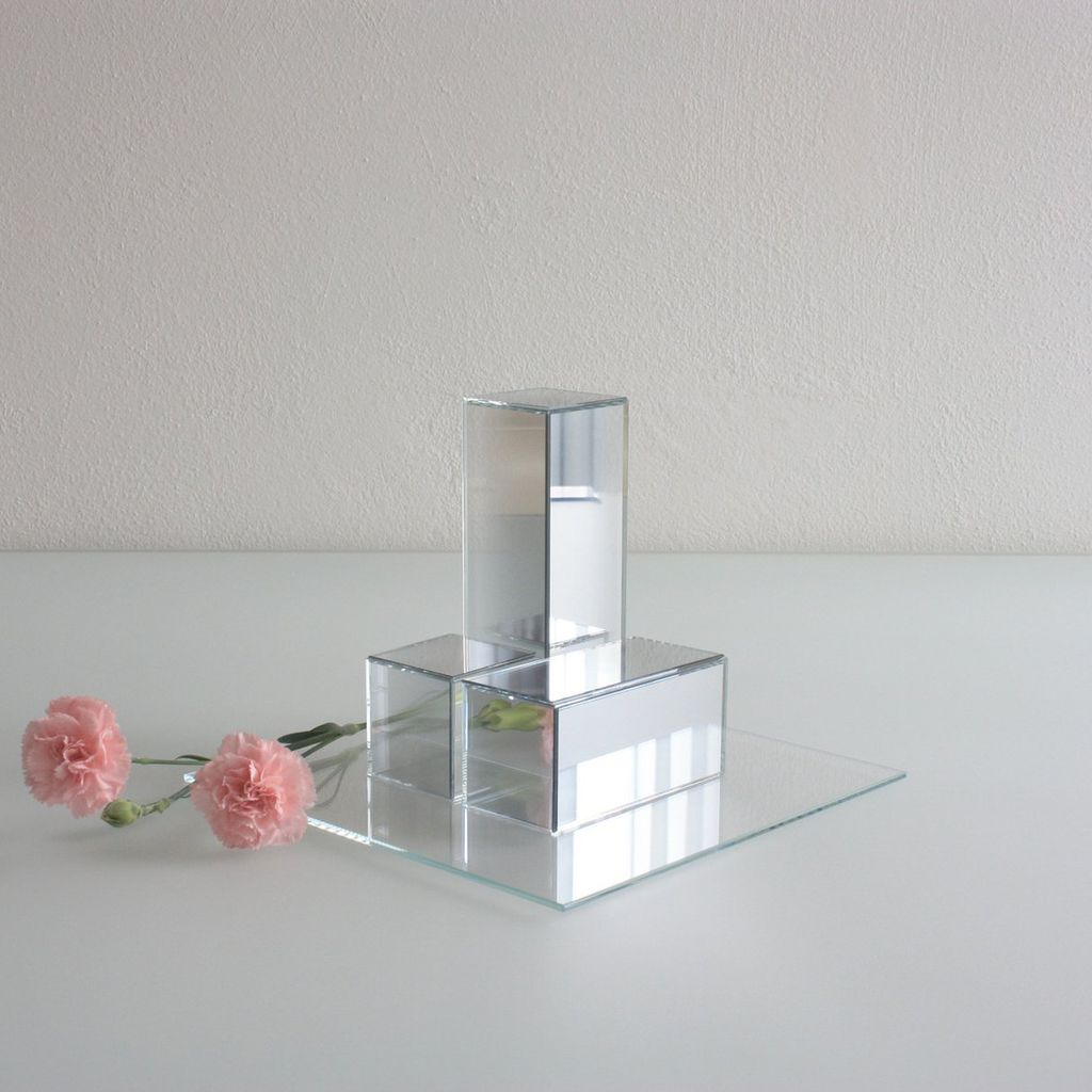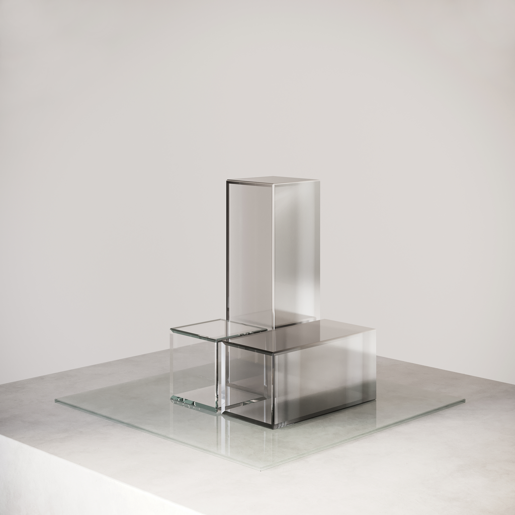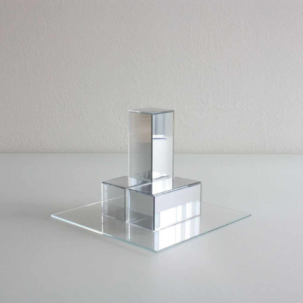 The Curiosité Collection is inspired by imaginary scenarios, playing with the several reflections of crystal glass surfaces, masterly handcrafted and enriched by sought-after mirror shade finish. These minimalist and plain volumes invite the observer to pursue more than one preferred point of view, on the hunt for that perfect intersection where shapes, translucent surfaces and mirror finishes provide an unexpected Trompe-l’oeil effect; creating a visual continuity where the objects of this composition blend flawlessly and disruptively.