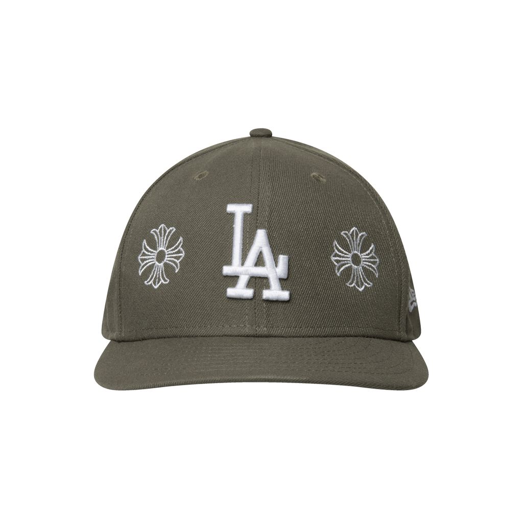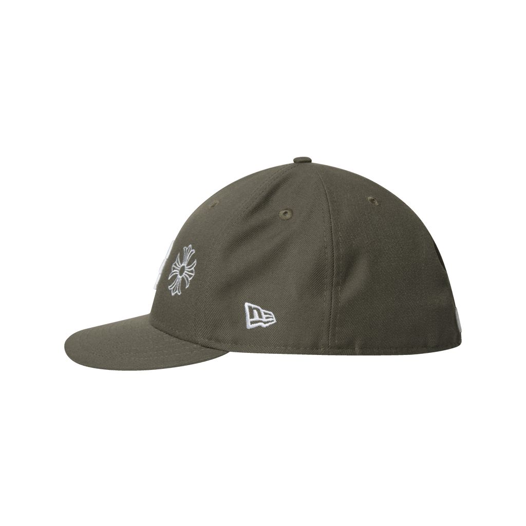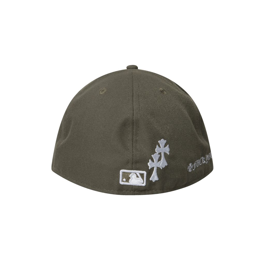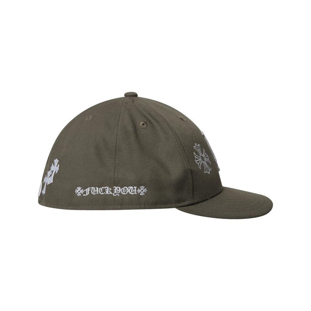LA Fitted Cap features custom "chrome hearts" embroidery and "fuck you" text at the back.