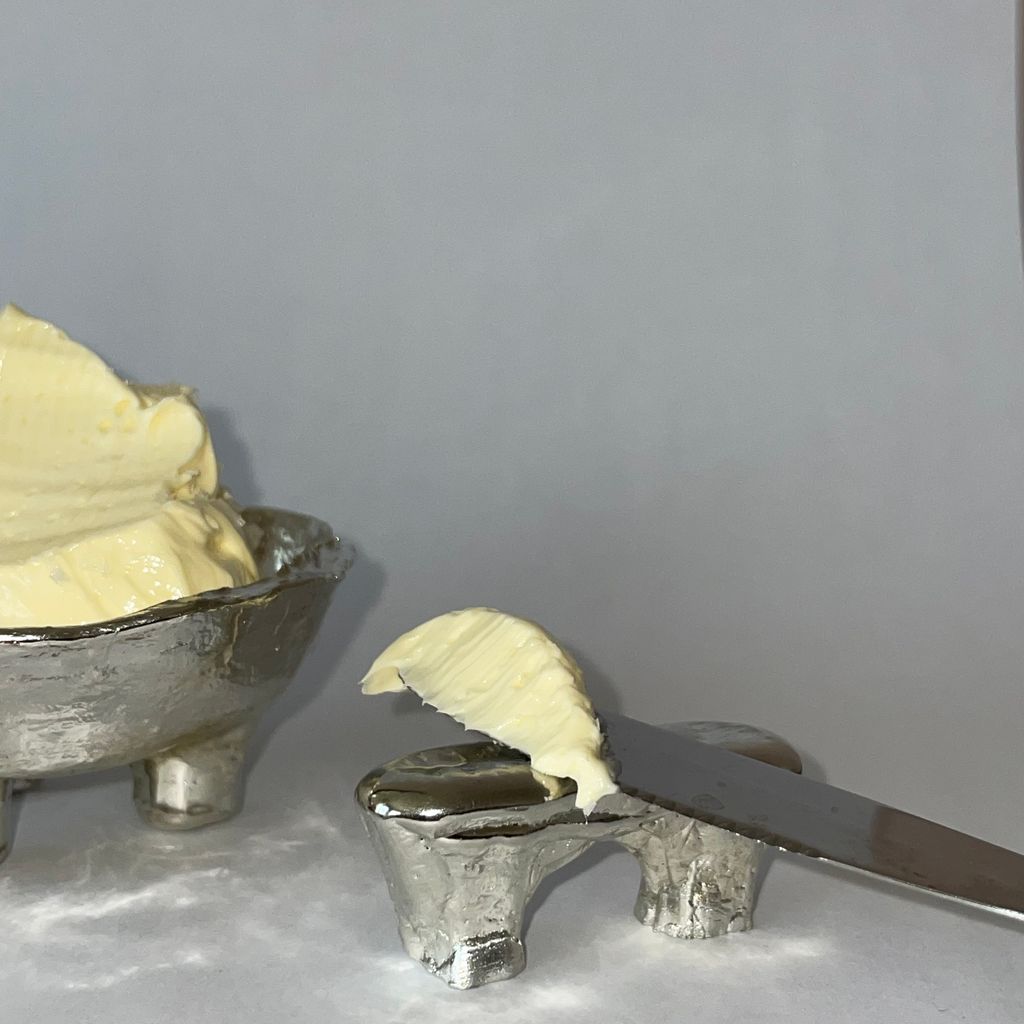 Studio Formbart is a Stockholm-based conceptual brand with its primary focus on hand crafted items by its founder, Sarah E. Haukka. The journey first began with the creation of her own piece of furniture, ”Vinarbänken” (The Wine Bench), which sparked the idea of starting Studio Formbart. Evolving and transforming over time, the vision for the studio remains the same, creating a space to collect all things beautiful and inspiring. While Sarah currently works with tin and stoneware clay, she remains curious to explore new materials and techniques. Sarah’s designs are characterised by their raw and organic forms, where rough finishes and bold shapes blend with delicate details, embracing the beauty in imperfections. Her work seeks to create pieces that are playful yet timeless, designed to be cherished for a lifetime.