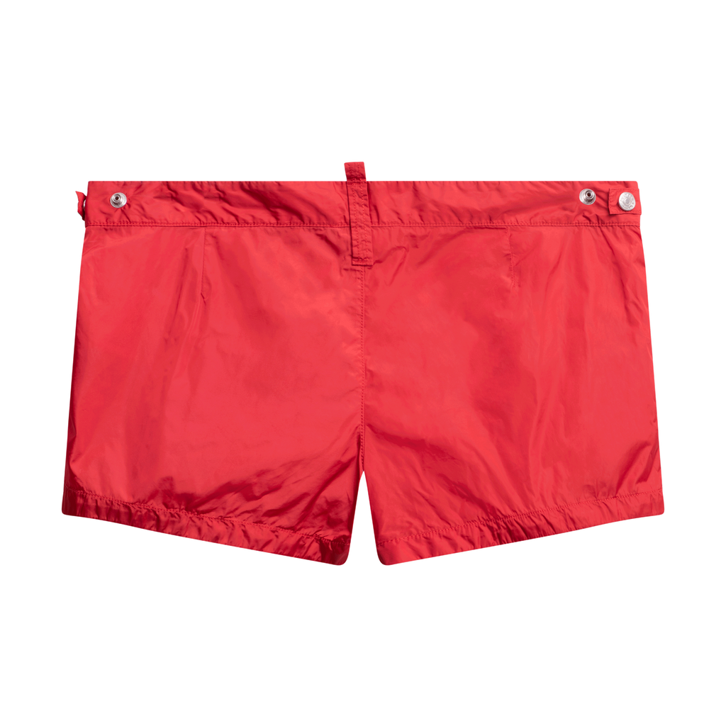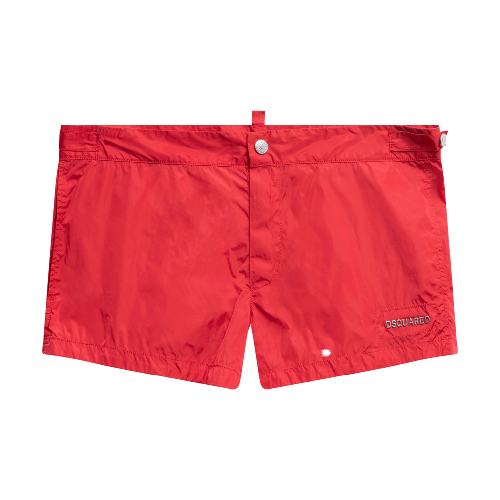 D Squared Swim Trunks features velcro-fly and snap closure, side pockets.