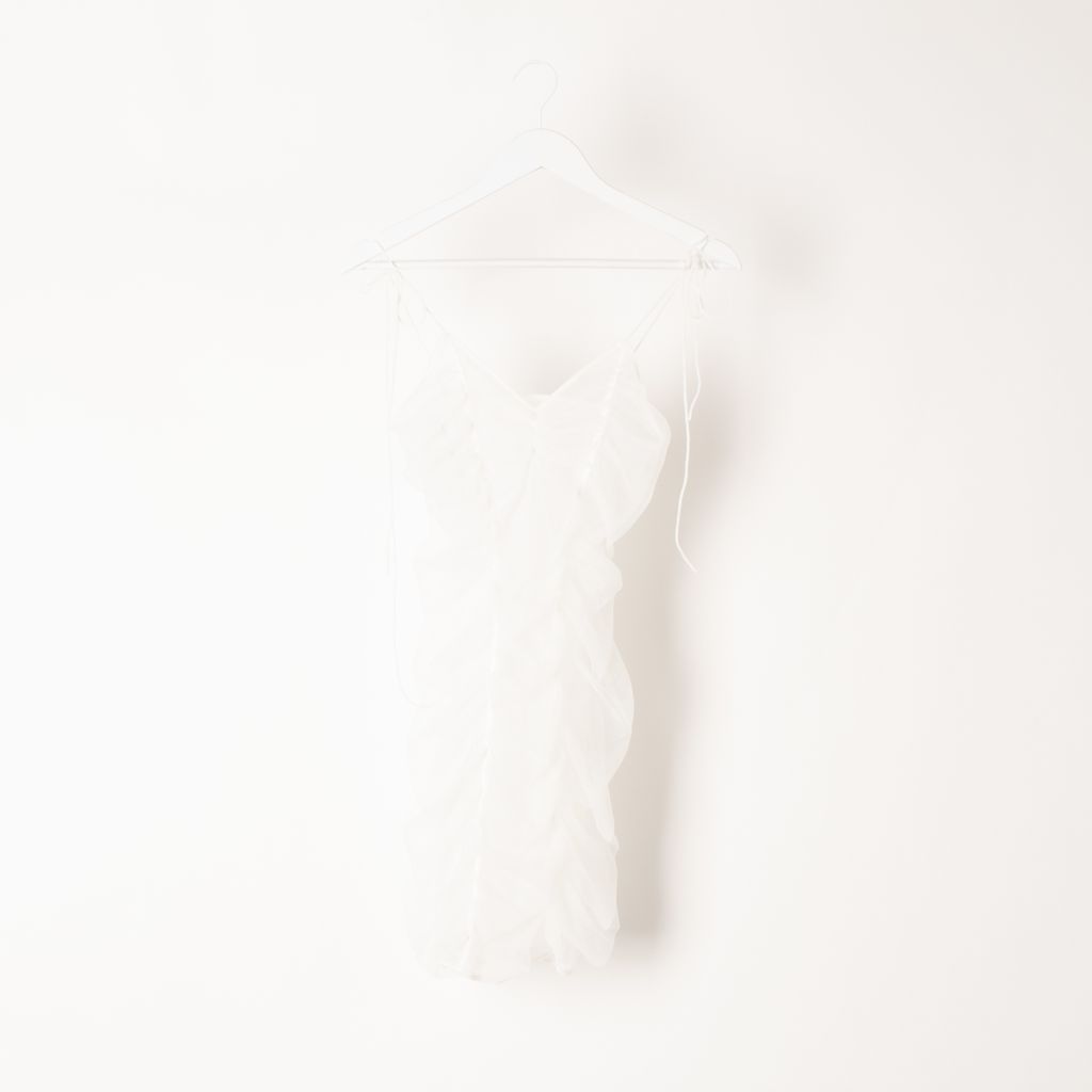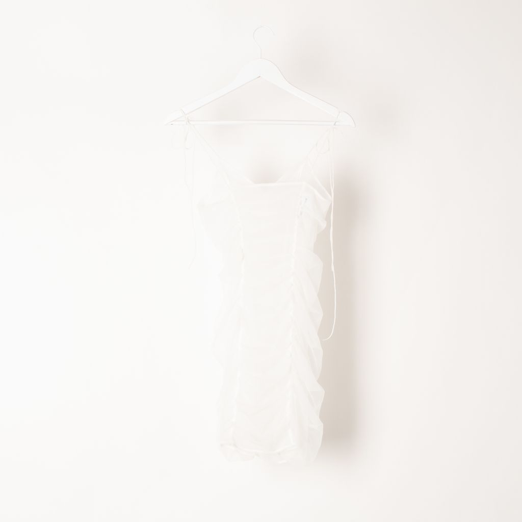 Like new, unveiled slip in ivory from Daisy. A stretch double layer tulle slip with adjustable straps tied in bows. 100% nylon.