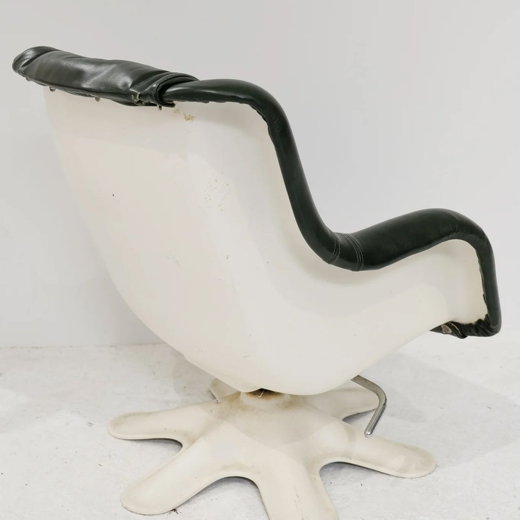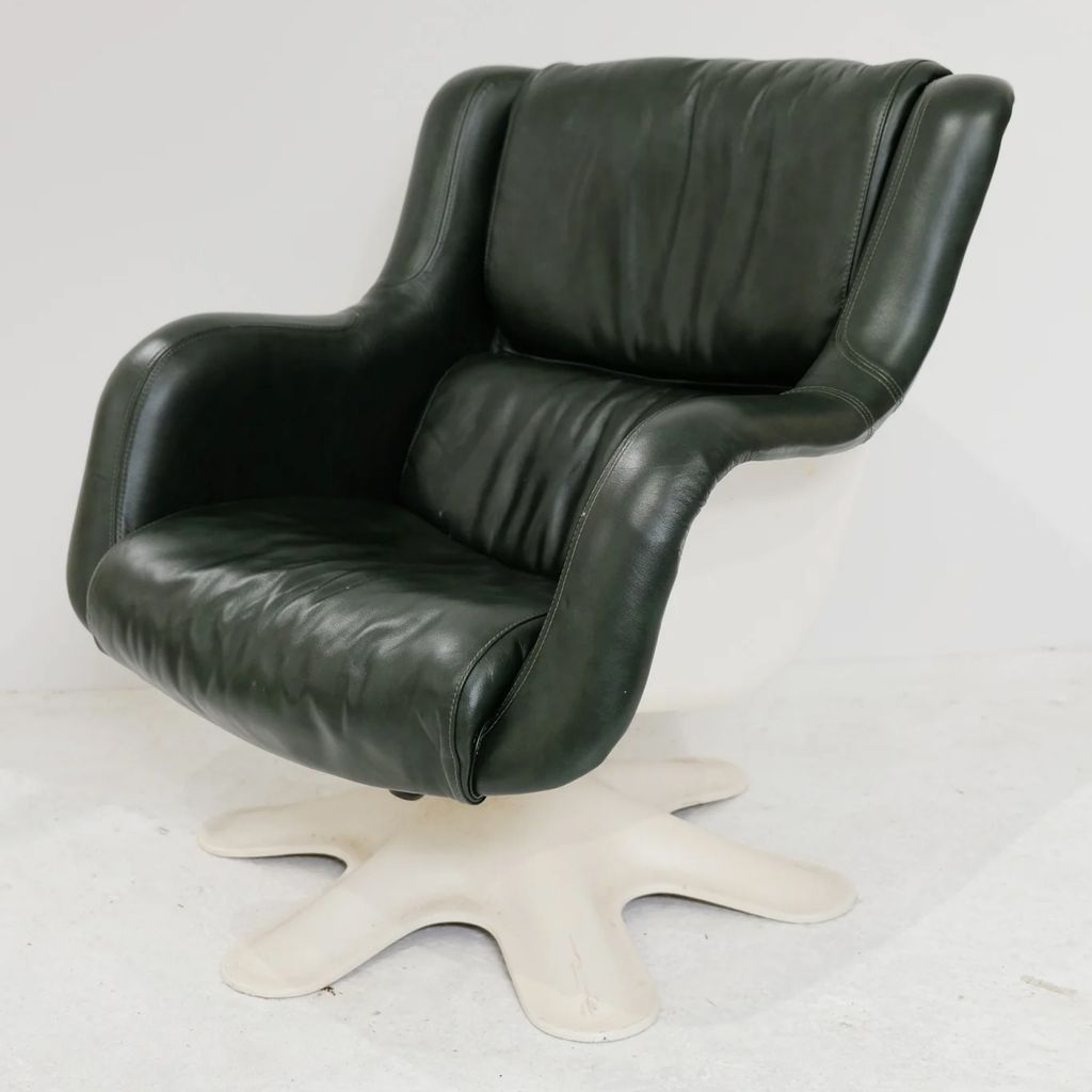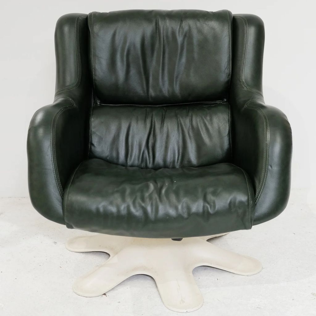Dark Green leather lounge chair; comes with detachable headrest, but unfortunately does not keep in place. Recline locking mechanism is also faulty.
