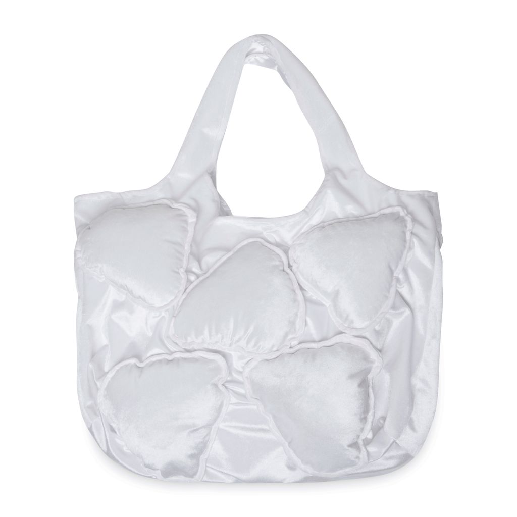 Dartci handbag in white is made with luxurious velvet fabric and obsidian puffy cut.