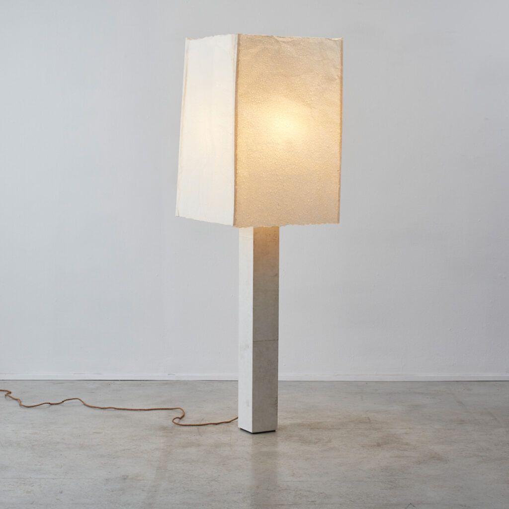 This handmade floor light is part of the inaugural furniture and lighting collection by Horan entitled Paper. The collection was designed exclusively with Béton Brut and sees Horan as a modern decoupeur, applying his material to an original series of works. Informed by French craft traditions of decoupage and the Japanese Mingei movement, Horan innovates with layering handmade heritage paper to create a new applied ‘vegan vellum’. The collection is grounded in forms as precise as they are architectonic. Evoking Deco and Classical, the geometries contain harmony in ratio.