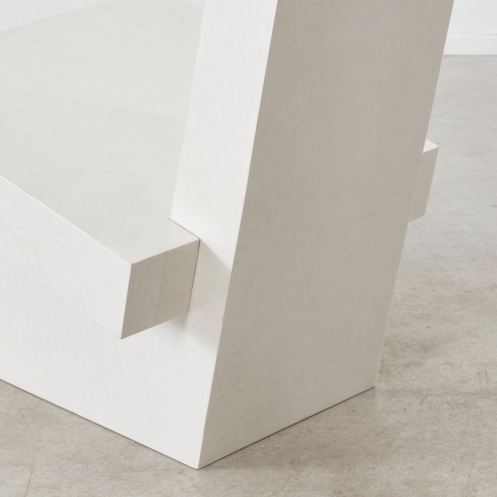 This handmade lounge chair is part of the inaugural furniture and lighting collection by Horan entitled Paper. The collection was designed exclusively with Béton Brut and sees Horan as a modern decoupeur, applying his material to an original series of works. Informed by French craft traditions of decoupage and the Japanese Mingei movement, Horan innovates with layering handmade heritage paper to create a new applied ‘vegan vellum’. The collection is grounded in forms as precise as they are architectonic. Evoking Deco and Classical, the geometries contain harmony in ratio.