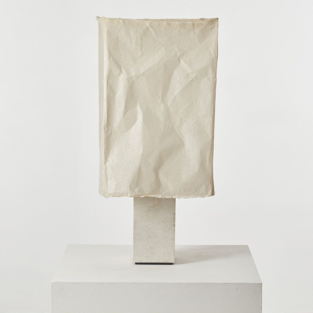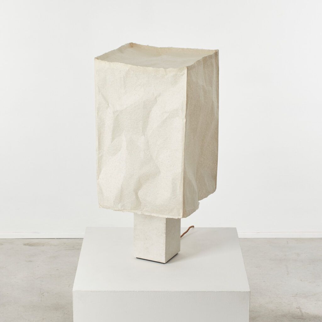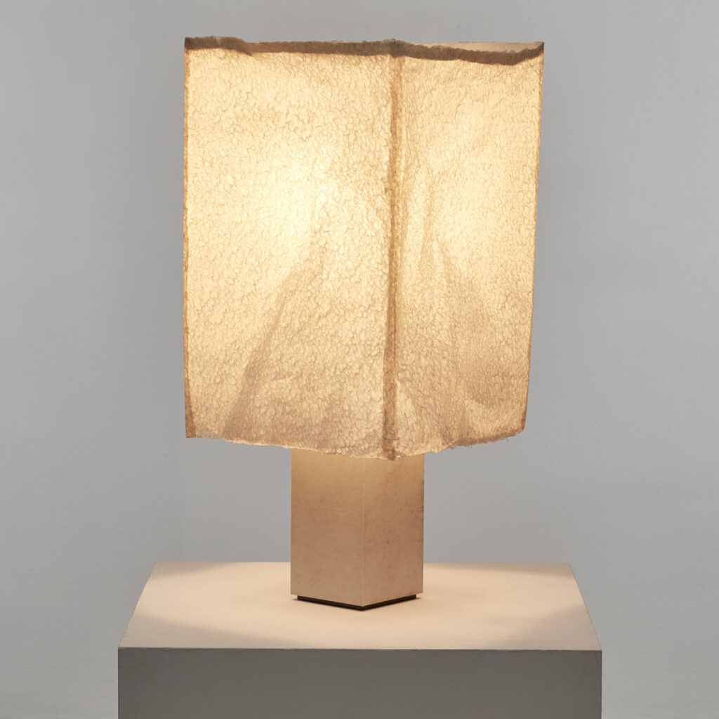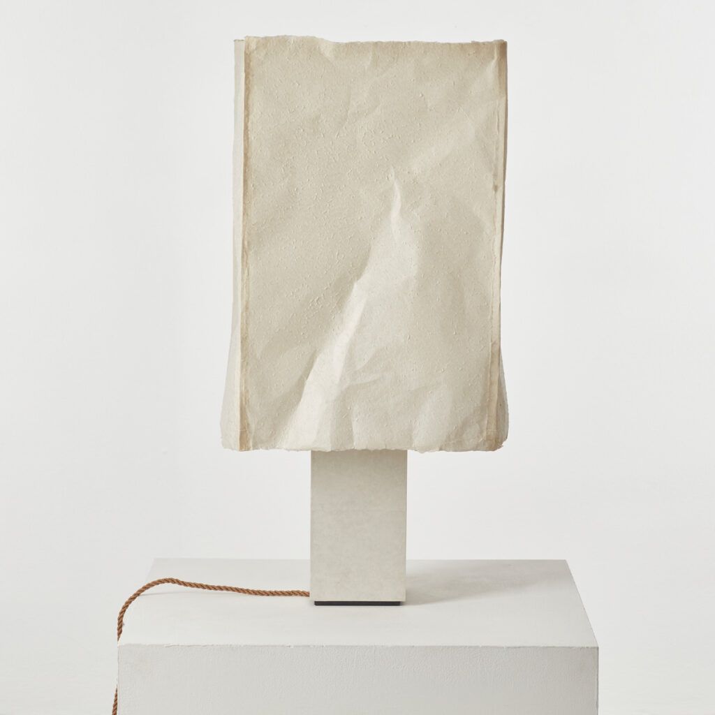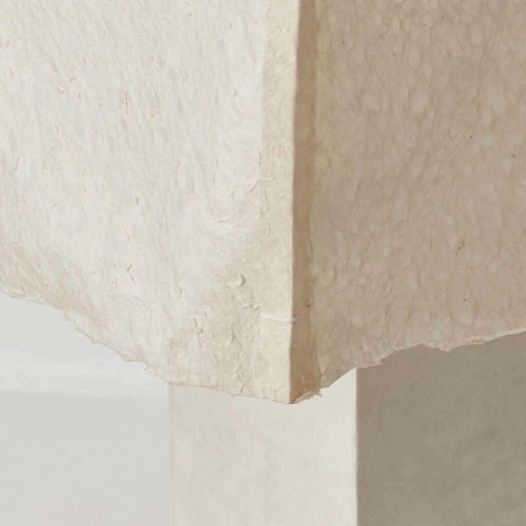 This handmade table light is part of the inaugural furniture and lighting collection by Horan entitled Paper. The collection was designed exclusively with Béton Brut and sees Horan as a modern decoupeur, applying his material to an original series of works. Informed by French craft traditions of decoupage and the Japanese Mingei movement, Horan innovates with layering handmade paper to create a new applied ‘vegan vellum’. The collection is grounded in forms as precise as they are architectonic. Evoking Deco and Classical, the geometries contain harmony in ratio.