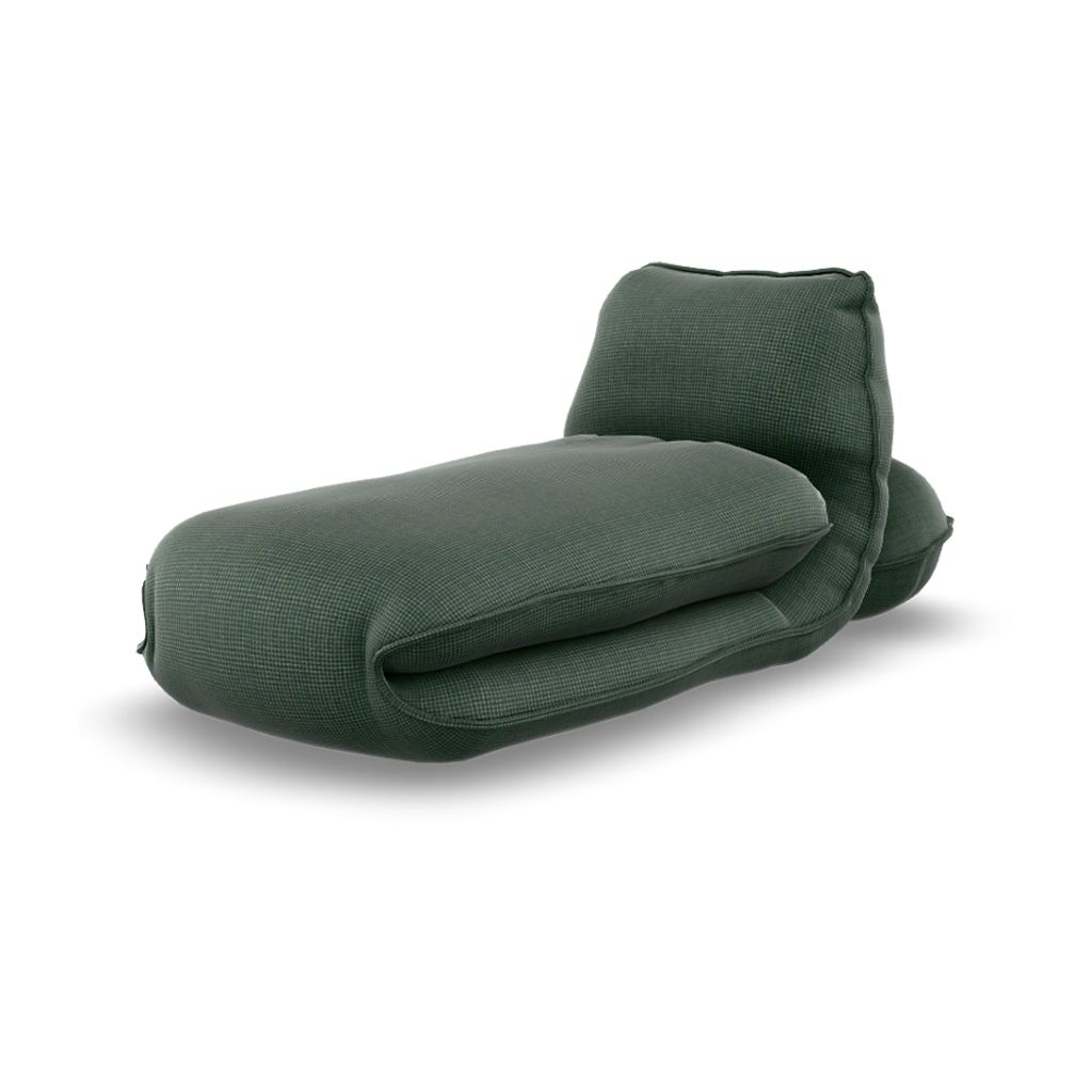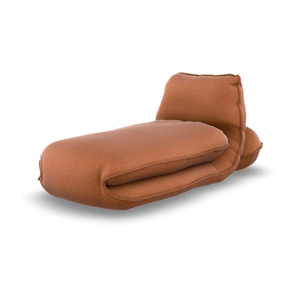 A fully frameless seating design filled with Dutch wool. Built without foam or internal structure. The form is created by folding the cover filled with wool, creating natural support and long lasting comfort.
