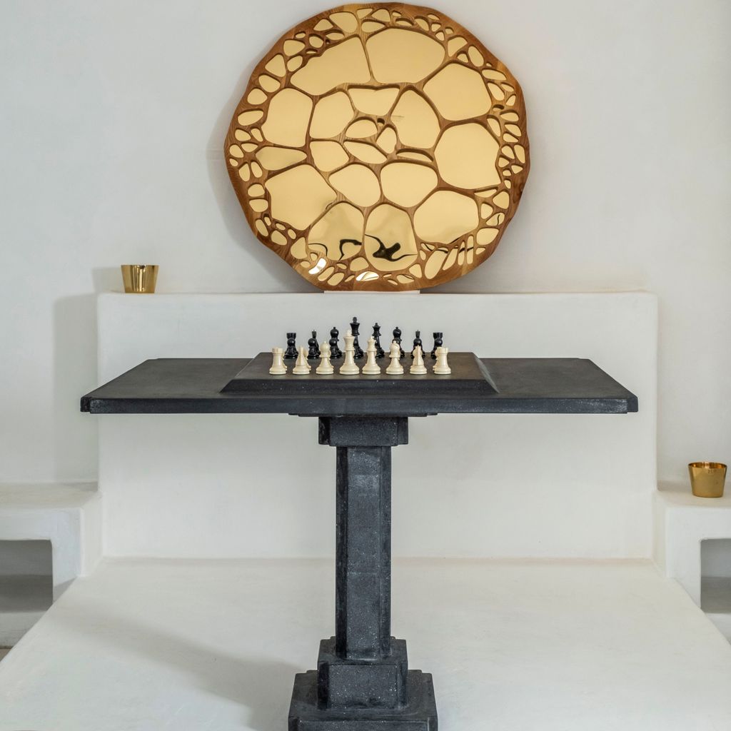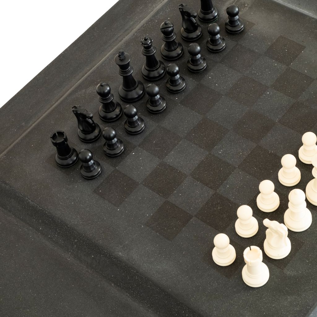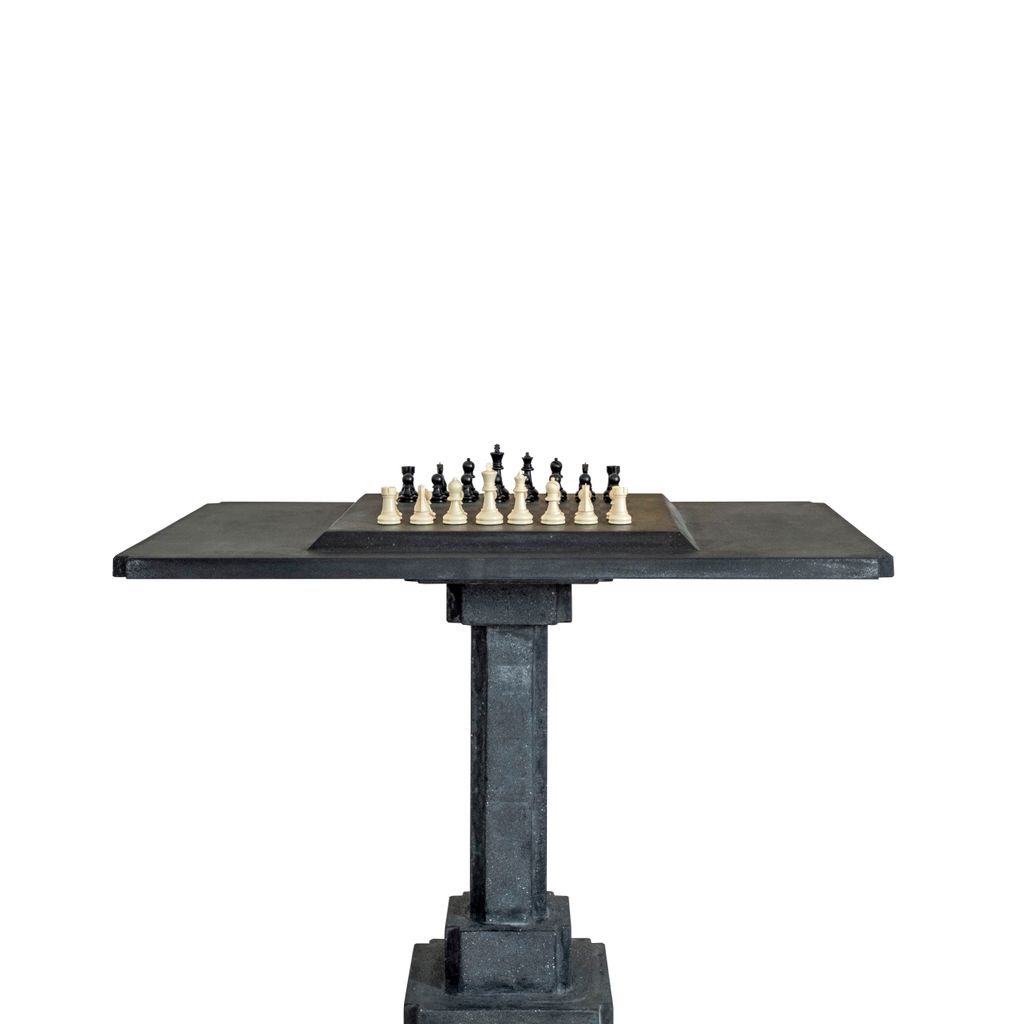 The Deco Chess Table was created in celebration of Design Miami's inaugural Los Angeles showcase. The fair takes place in the historic Holmby Hills Estate; a home designed by famed architect Paul R. Williams, a major contributor to the appeal of the Angeleno cityscape. With this table, James pays tribute to Los Angeles' art deco movement, a timeless style that resonates whenever historic Los Angeles is spoken. The play surface is elevated to focus attention to the game, while the table portion serves to hold the clock and chess pieces. A balanced beauty, serving style and intention.