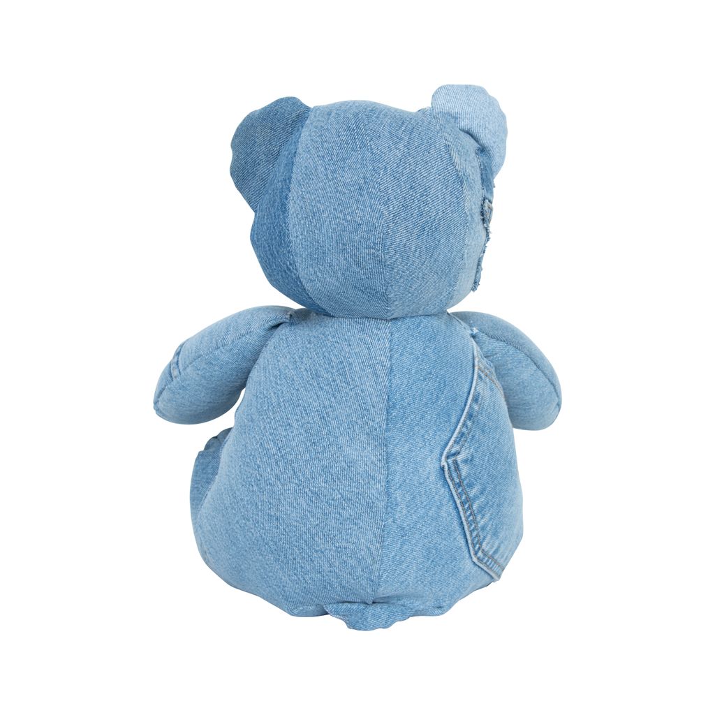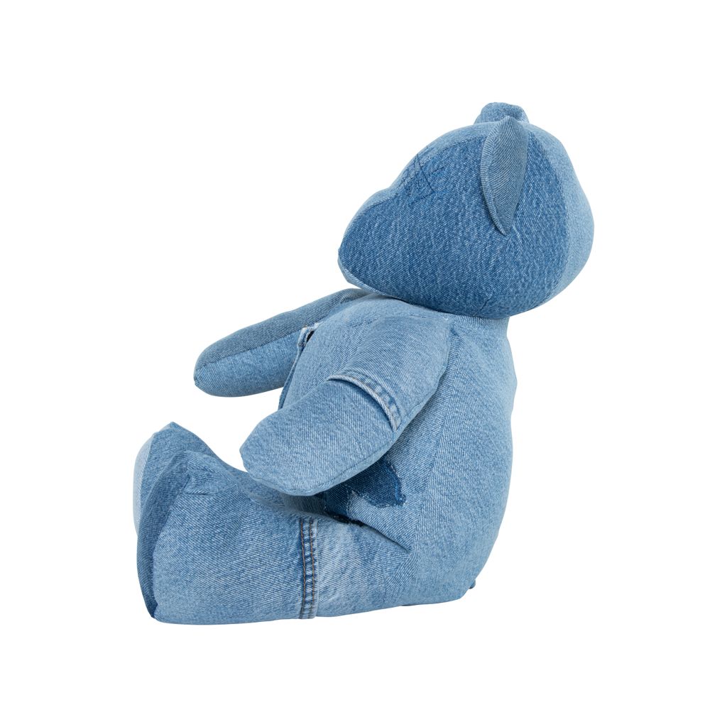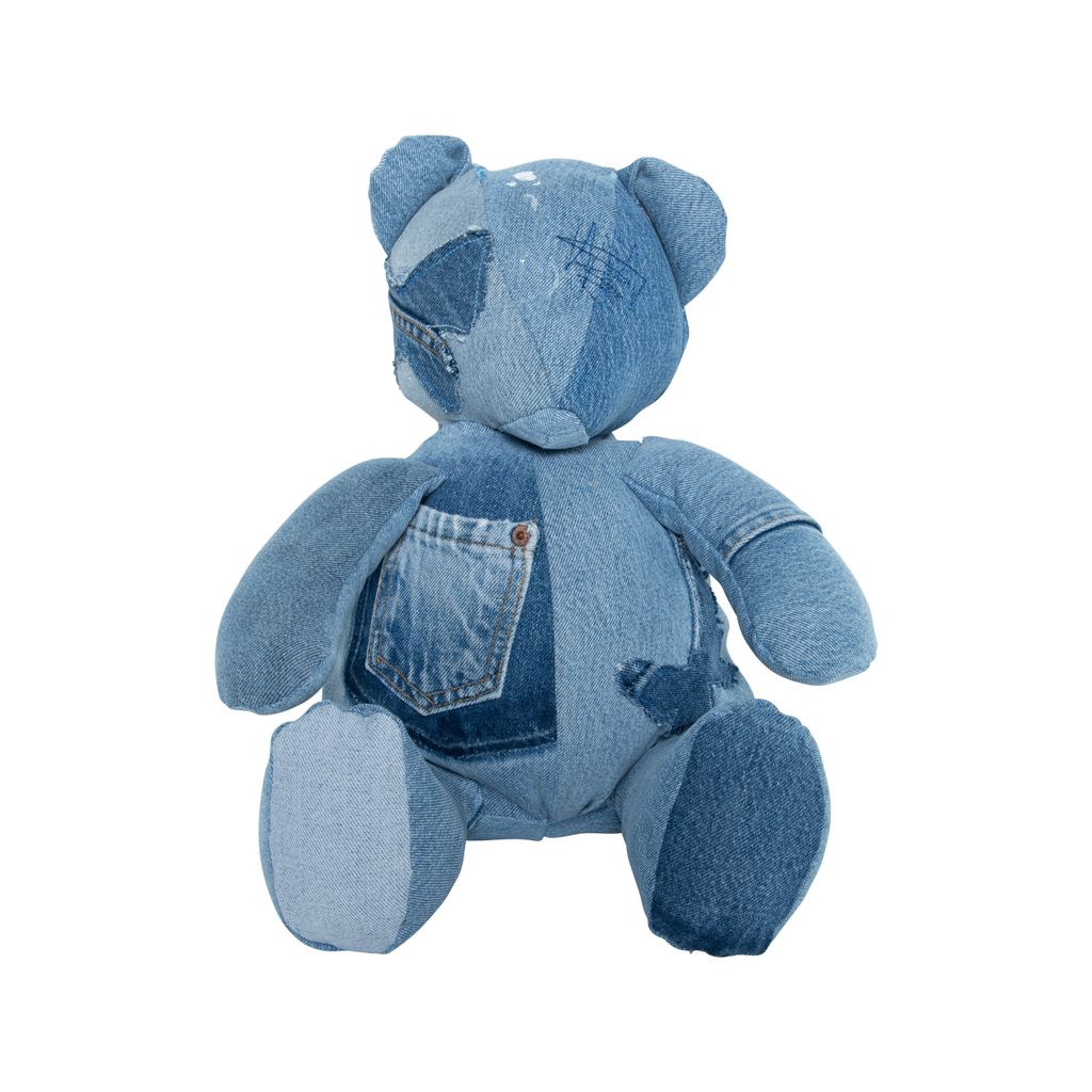 Repurposed Denim Teddy Bear is made up of vintage Levi's denim scraps.