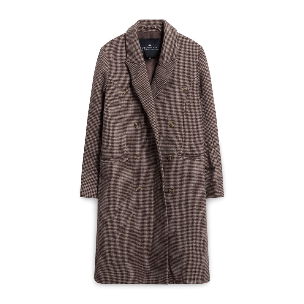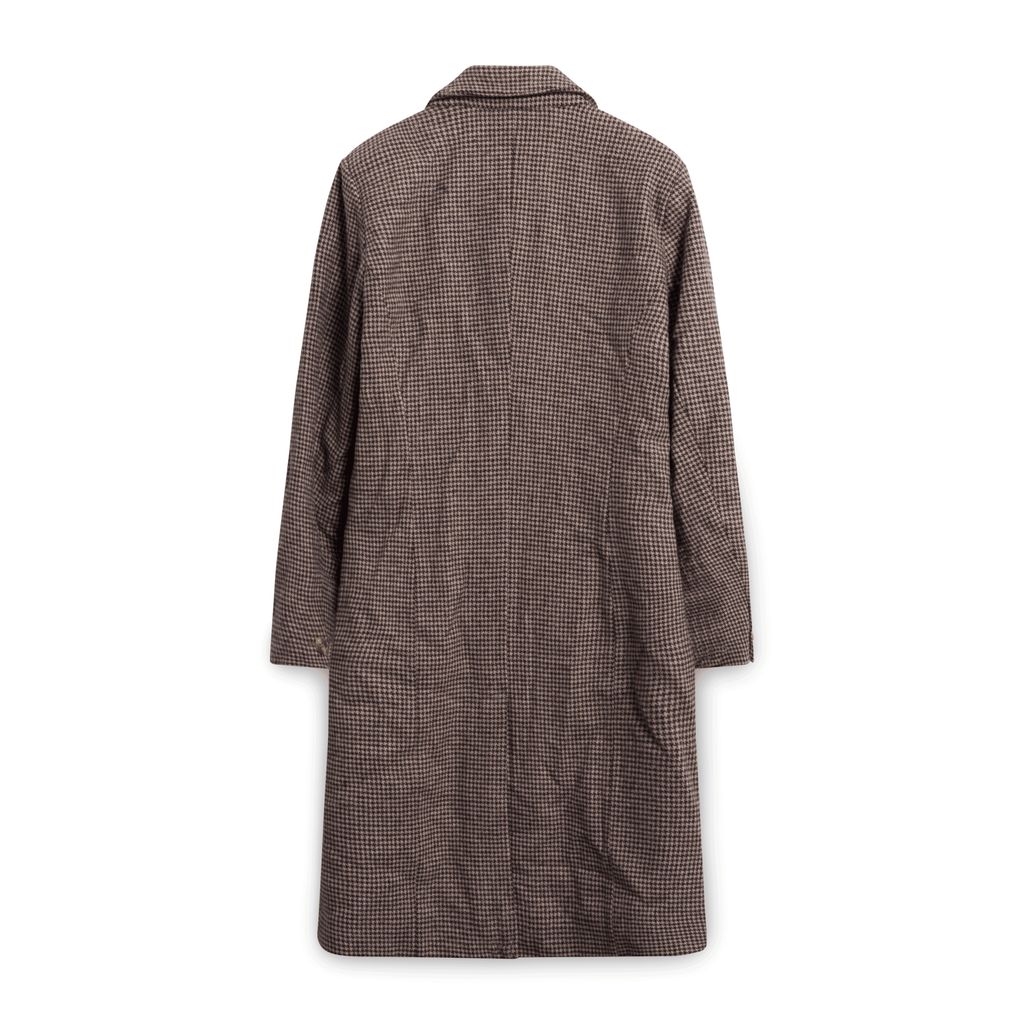 Designers Remix Charlotte Eskildsen Wool Houndstooth Peacoat in Brown features double-breasted buttons and dual side pockets on either side of the waist.
