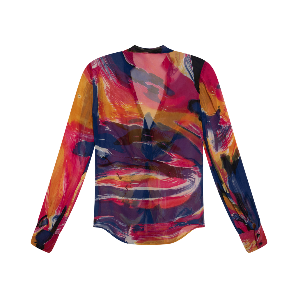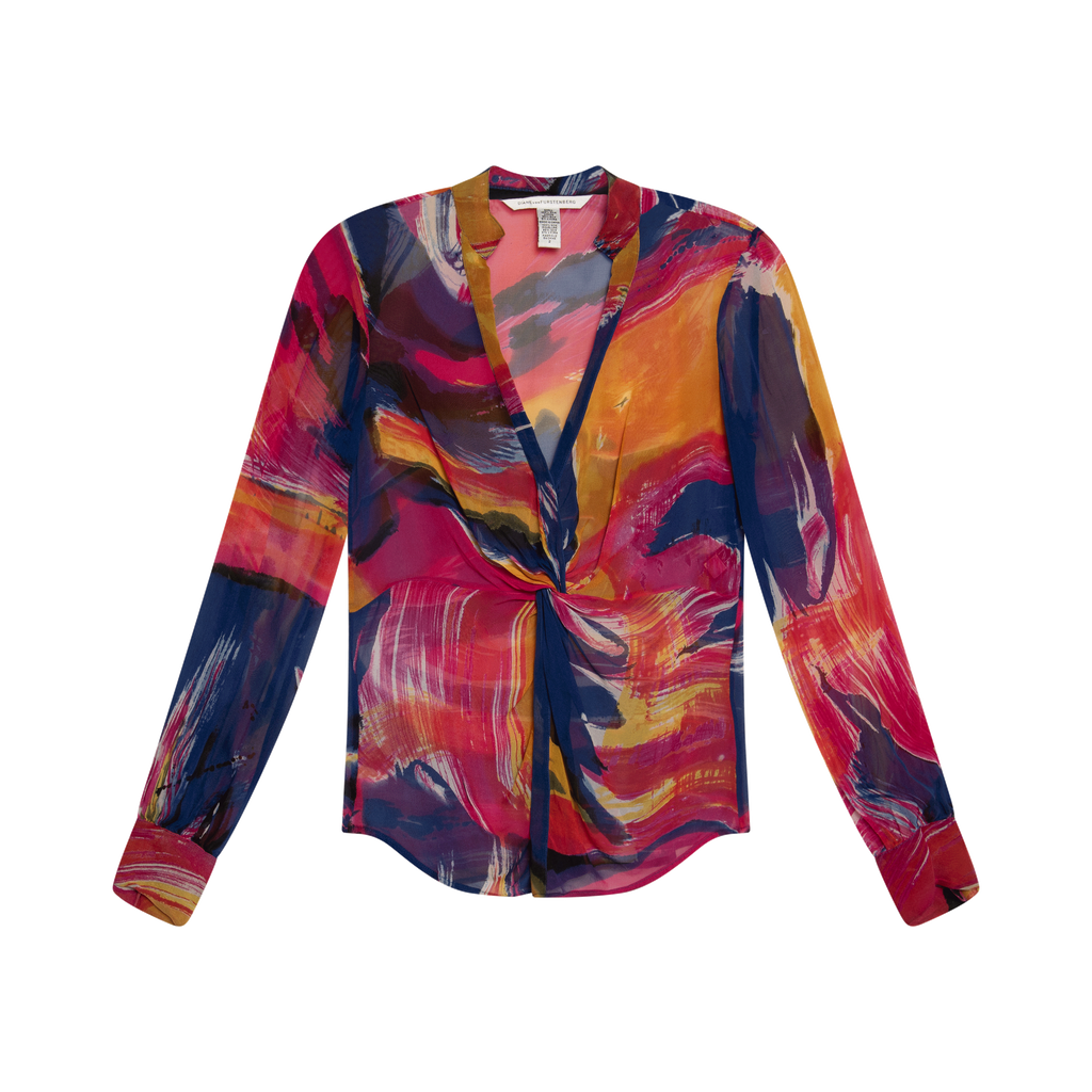 Diane von Furstenberg Silk Top features pullover fit, watercolor-esque design throughout.