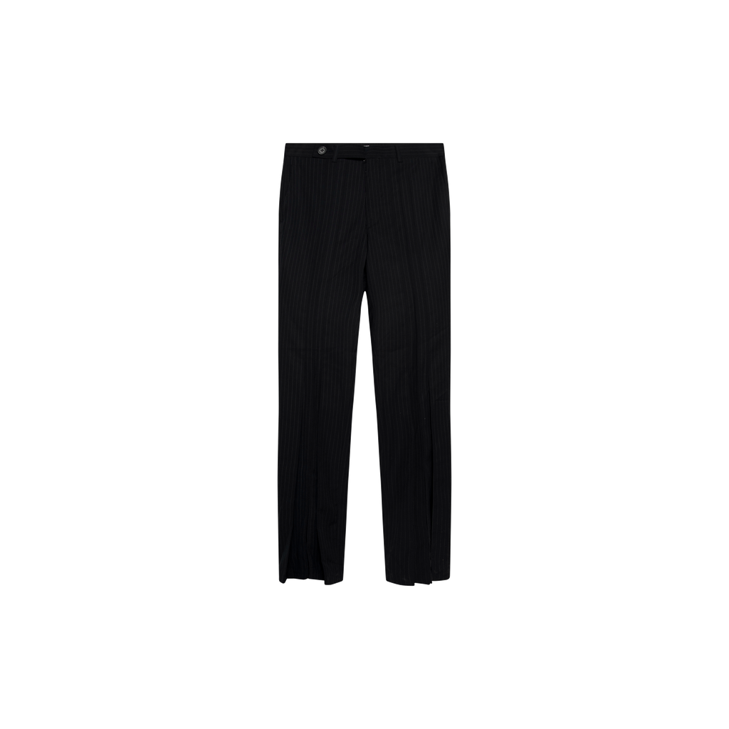 Dickson Lim Blazed Tailored Trousers Slim features 3D space blue pinstripes, flared details, signature flap at back pocket, and DL's signature horn button for closure.