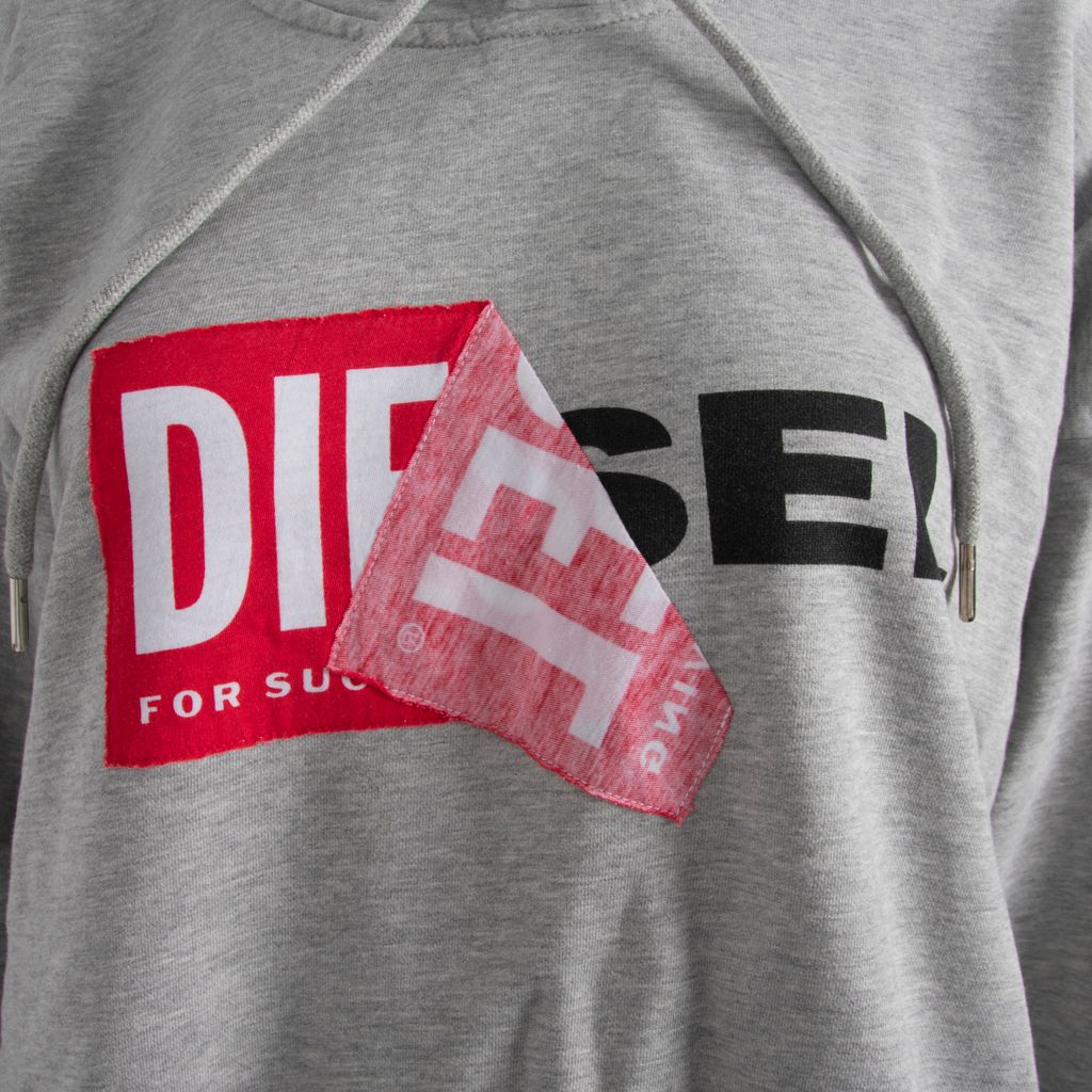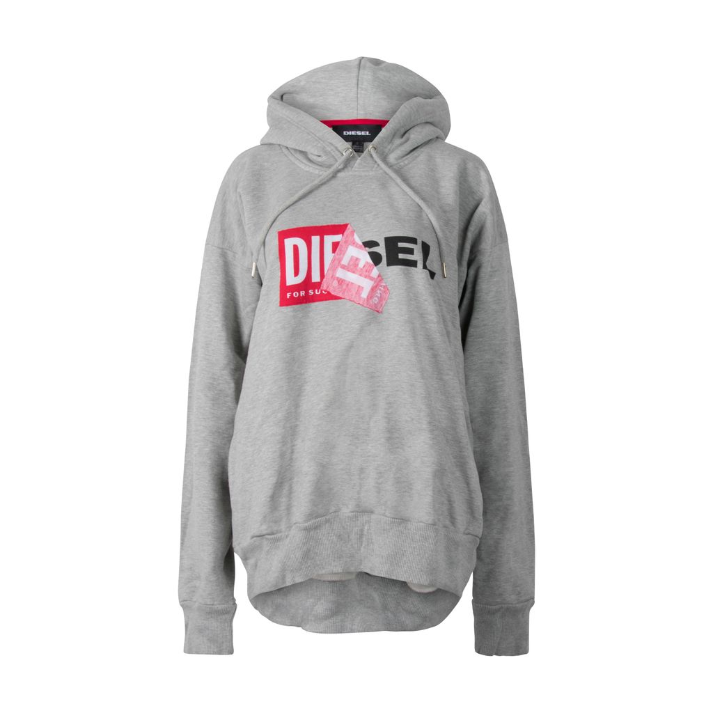An instant icon, this oversized hoodie is crafted from brushed cotton that has been washed for a soft, lived-in feel. The design nods to the transformation of the Diesel logo−seen peeling off in red to reveal the brand new logo in black. In great condition.