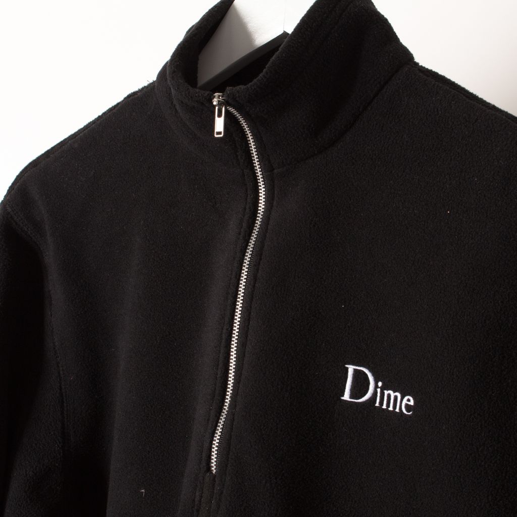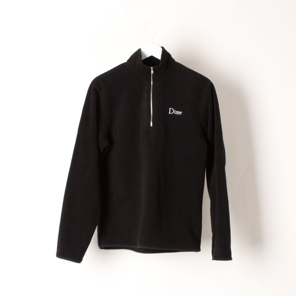 Like new, fleece logo quarter-zip from Dime. 100% polyester fleece, embroidered front chest logo in white, front zip seal, collared.