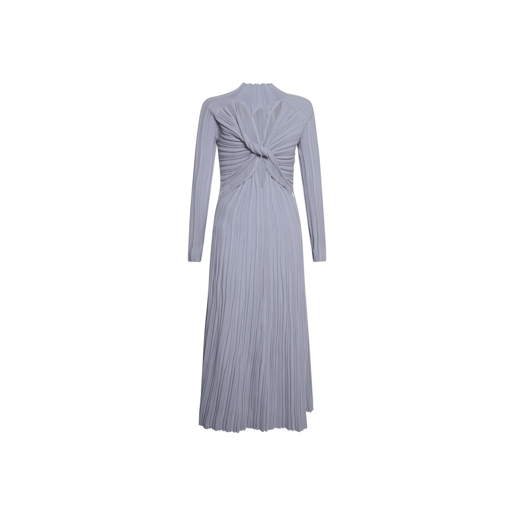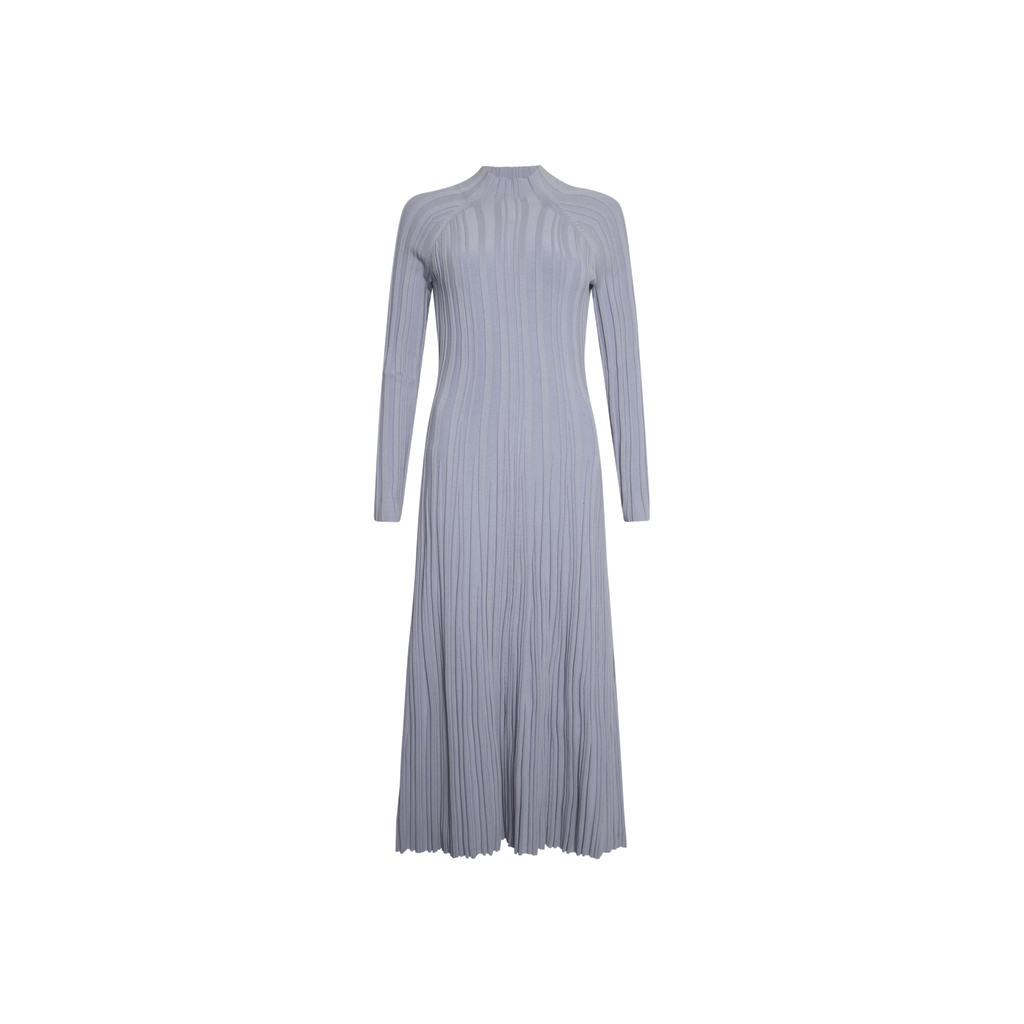 Dion Lee Violet Lung Twist Dress features midi length, corrugated rib pleat knit, twist construction, mock neck collar, raglan sleeves, and slight flare at hem.