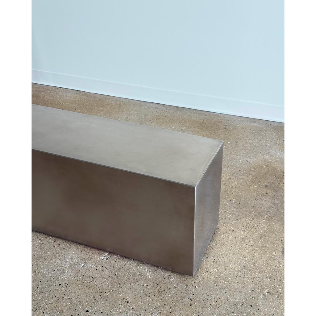 Italy, 2004. Stainless steel framed bench with sandblasted finish and a single dip for seating.