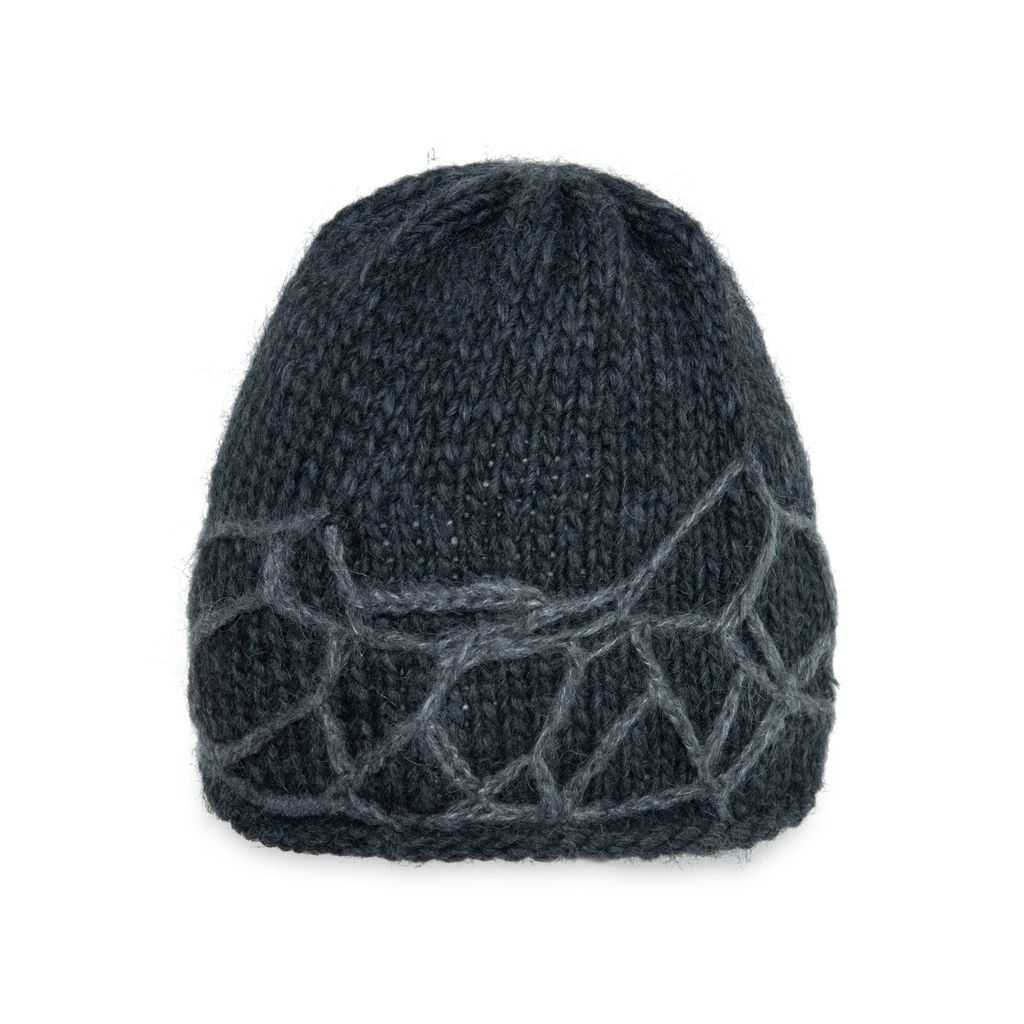 Distressed Beanie in Dark Grey is a carefully knitted beanie with crocheted distressing pattern as the brim, a signature of String of Kisses.
