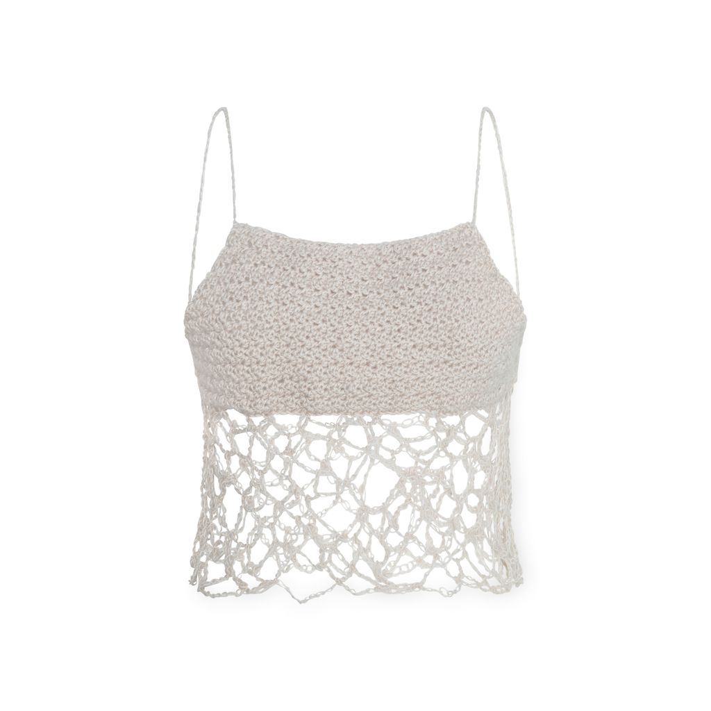 Distressed Top in Cream is carefully crocheted by hand, stitch by stitch. A very versatile top which can be styled in so many ways and elevate your outfit. This design was the first experimented piece that included the distressing pattern and has remained as one of SOK’s core designs ever since.