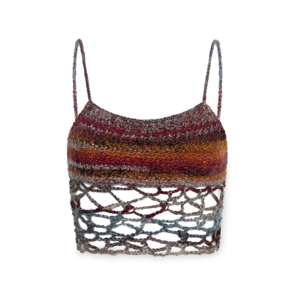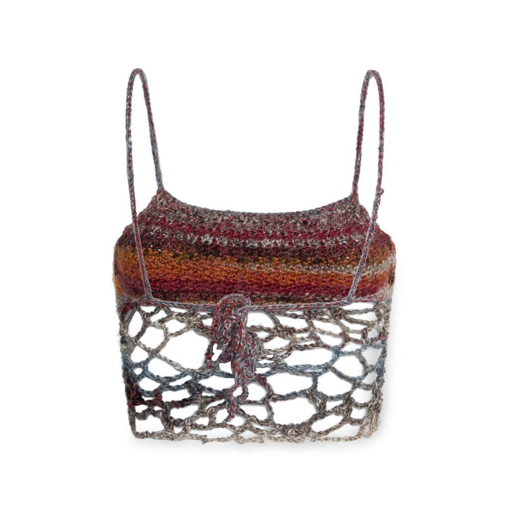 Distressed top in Red is carefully crocheted by hand, stitch by stitch. A very versatile top which can be styled in so many ways and elevate your outfit. This design was the first experimented piece that included the distressing pattern and has remained as one of SOK’s core designs ever since.