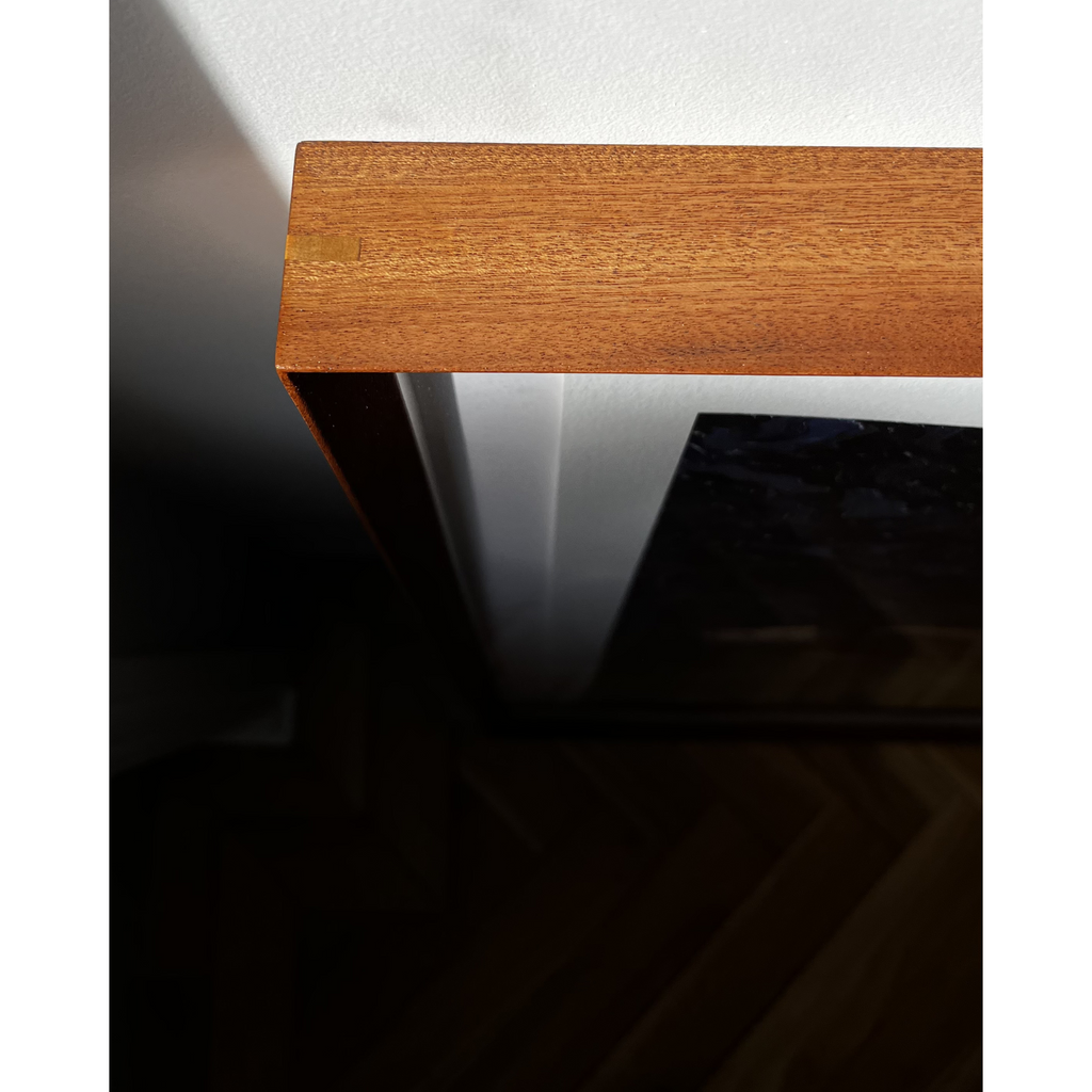 The print is float mounted within a bespoke bevelled sapele wood frame, allowing it to be reframed in the future without any damage.