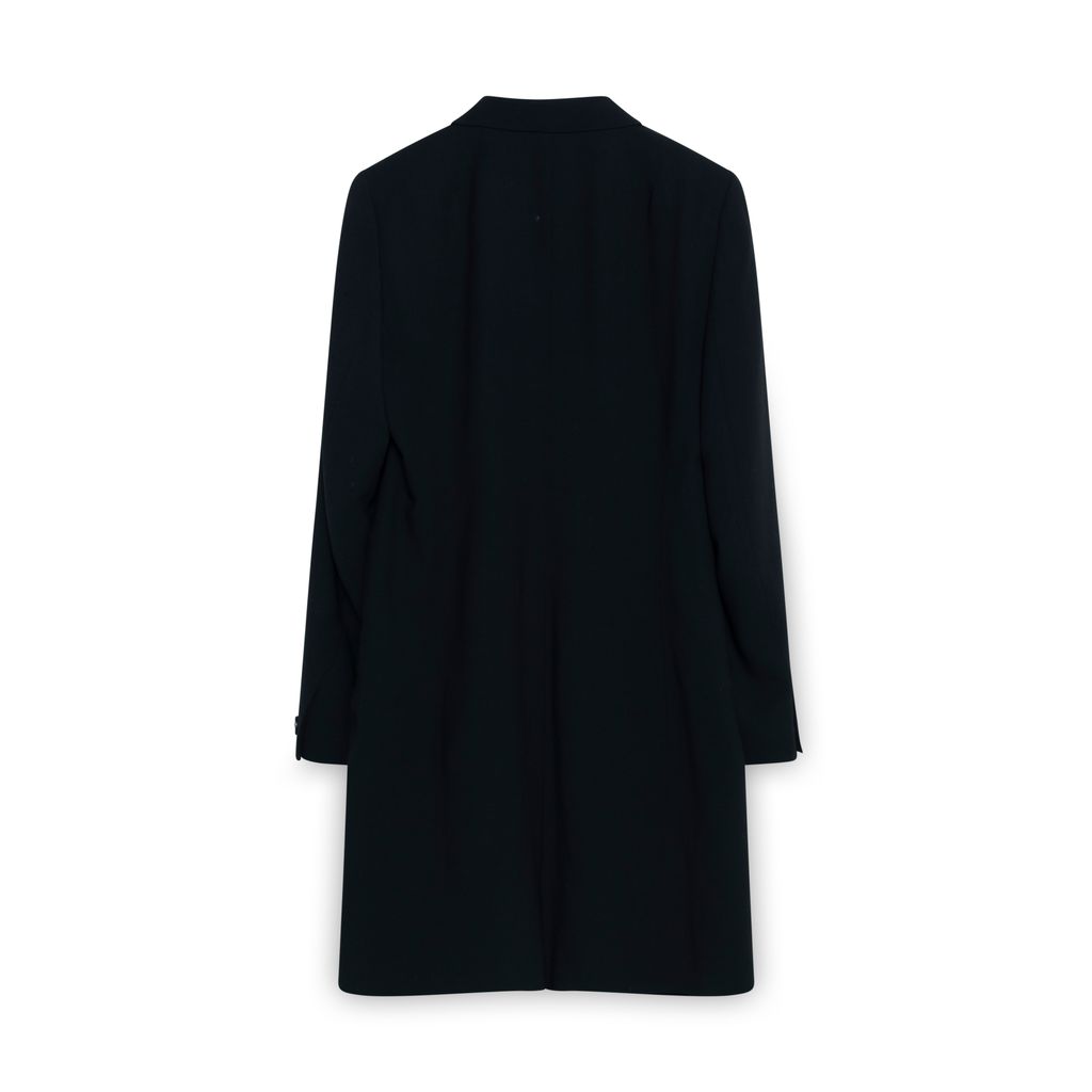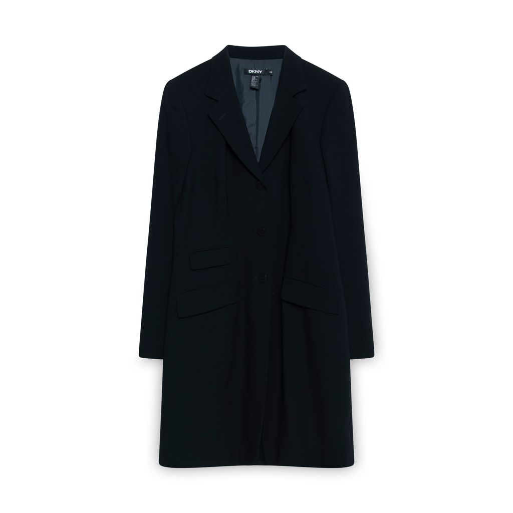DKNY Black Blazer Trench Coat features shoulder pads, front button closure, 3 welted pockets on front, and vent in back.