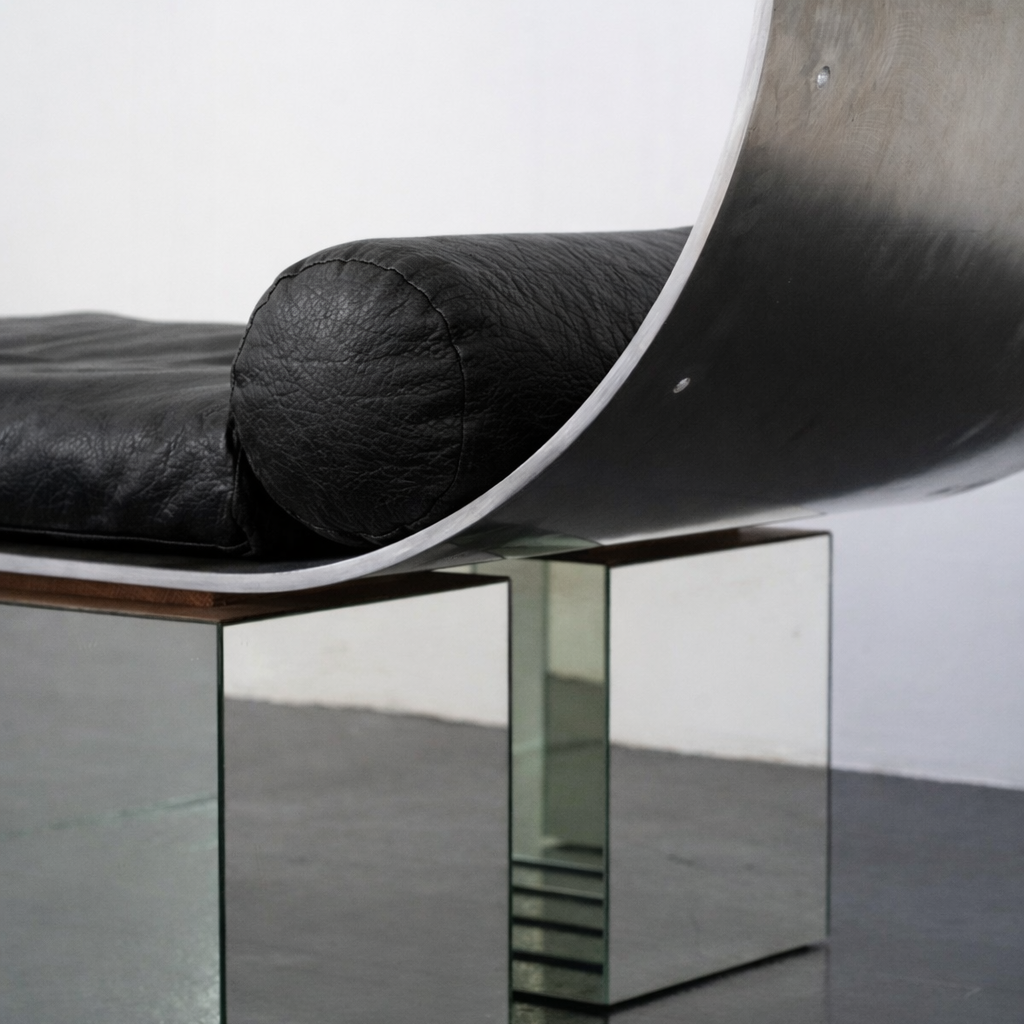 Aluminum, Leather, Mirrors.
