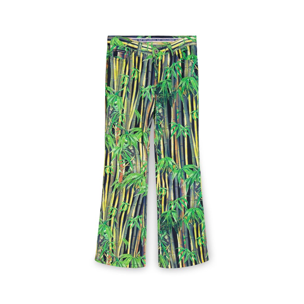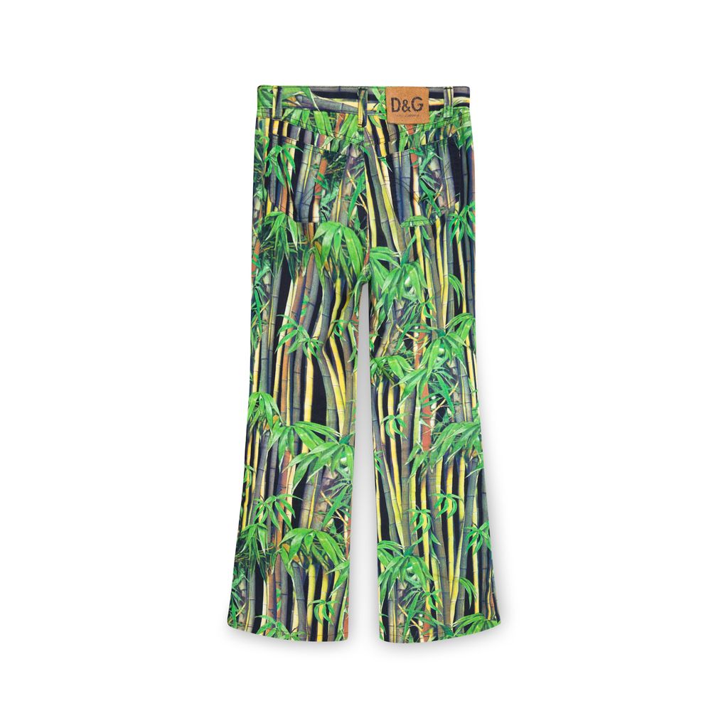 Dolce and Gabbana Bamboo Pants from 1999 feature eclectic print, front and back pockets, button closure, and original labels.