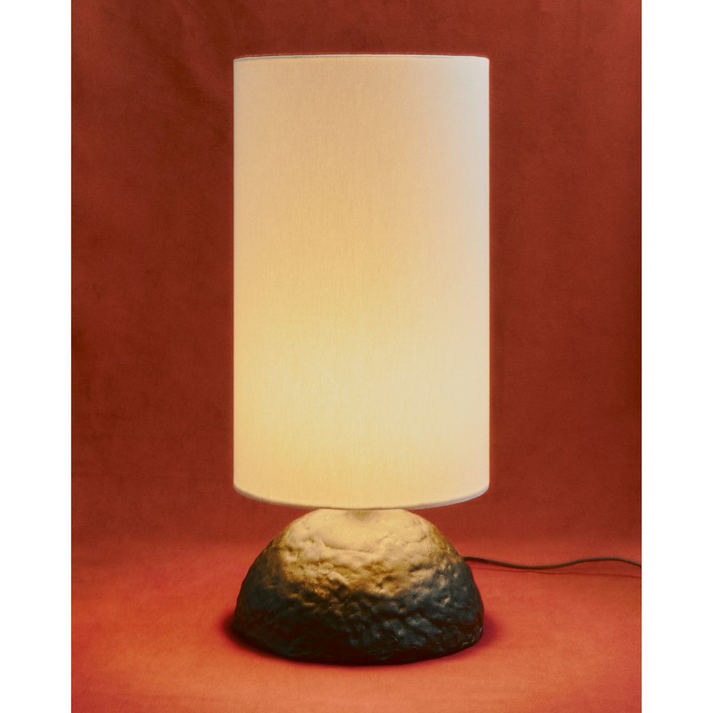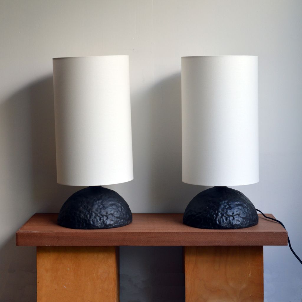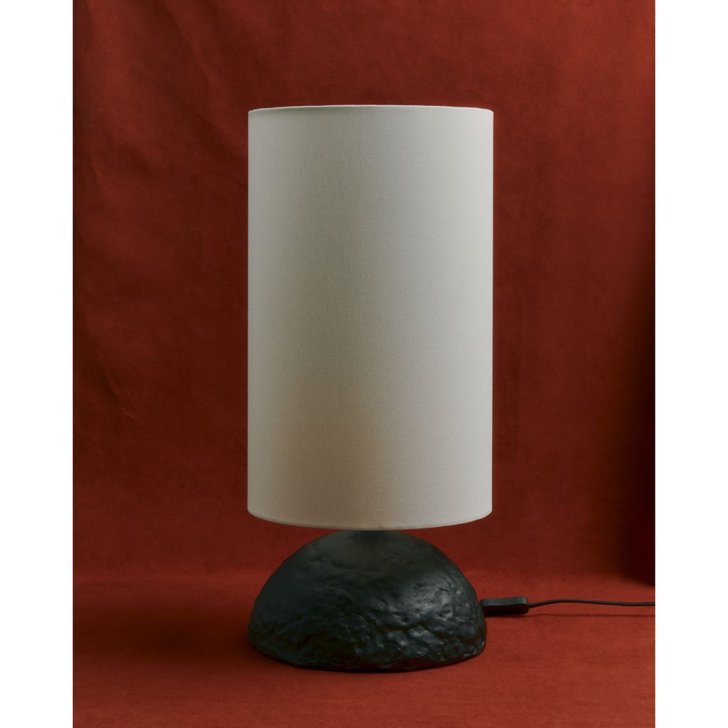 This lamp base form was hand sculpted by Mike Ruiz Serra in his NYC studio and then sand cast in iron. This piece is finished with a black oxide solution and wax.