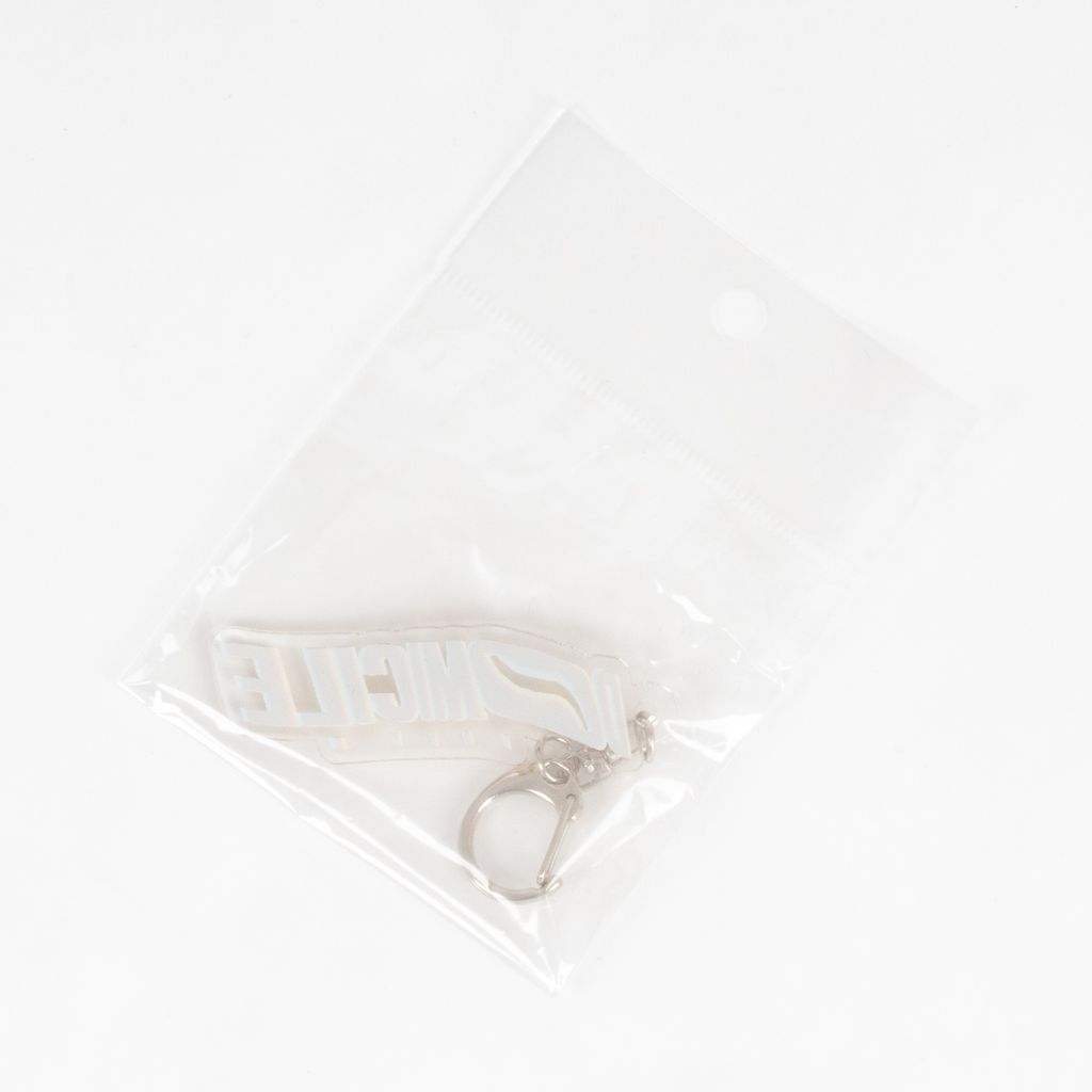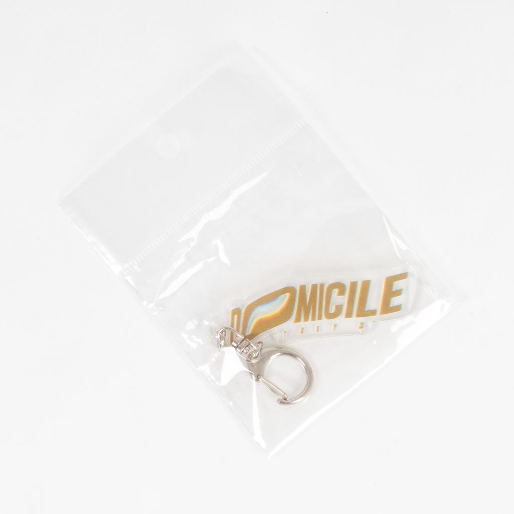 This keychain from Domicile Tokyo has travelled far overseas from its original location of their converted dormitory storefront in Harajuku. Features 3D style stretched Domicile Tokyo logo on clear cut acrylic as well as C-clip style hardware.