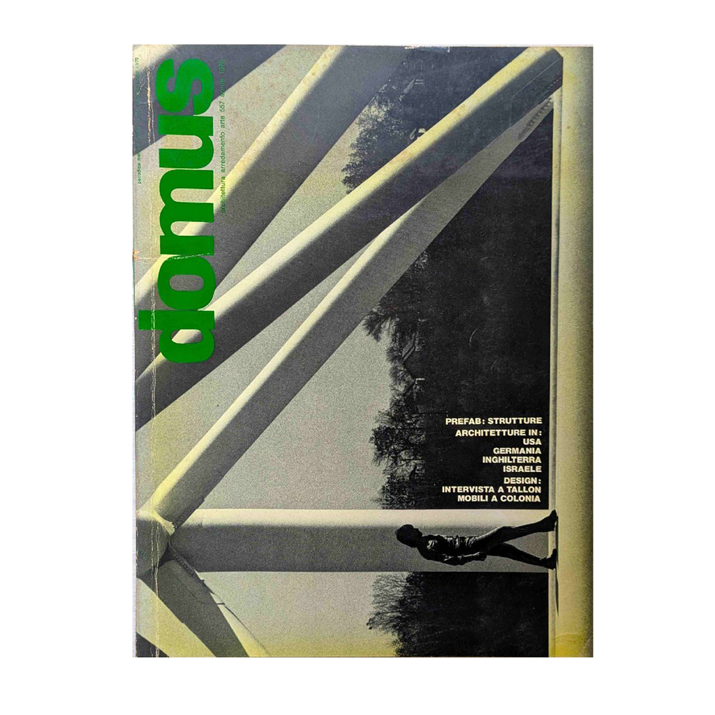 1976 issue of Domus - a monthly review of architecture, interiors, design, and art. Text in Italian.