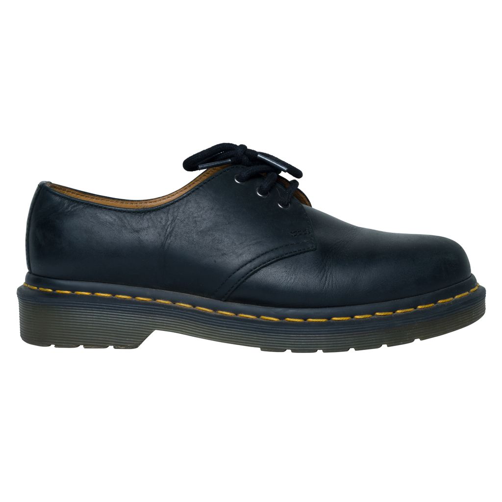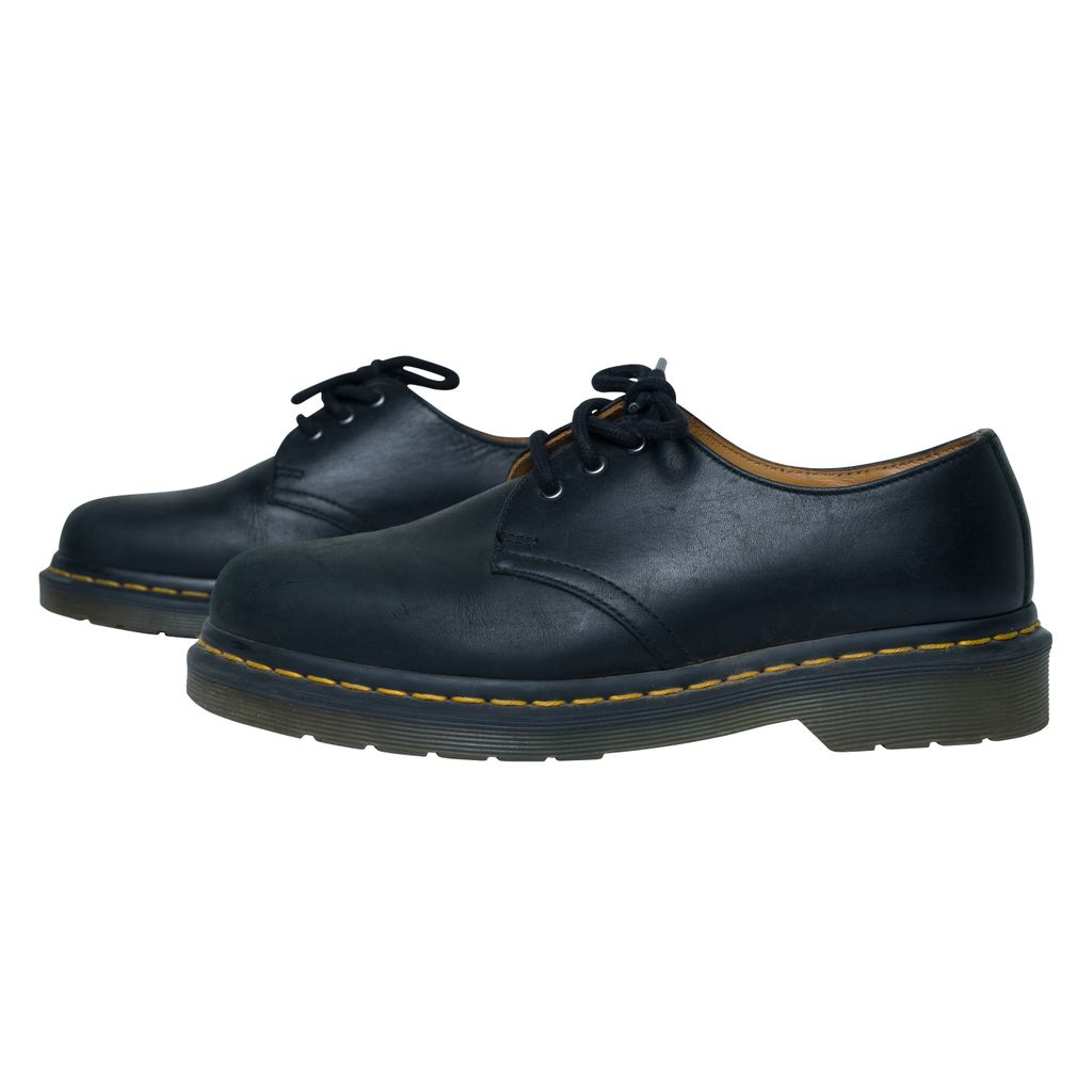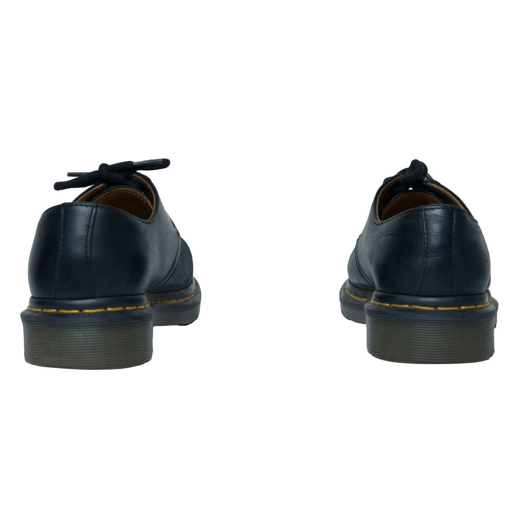 Dr. Martens 1461 Smooth Leather Oxford Shoes features tonal three-eye lace up closure, buffed leather lining in tan, and PVC sole.