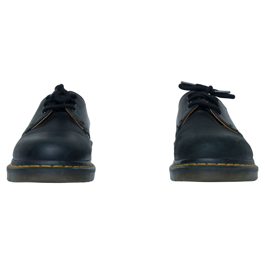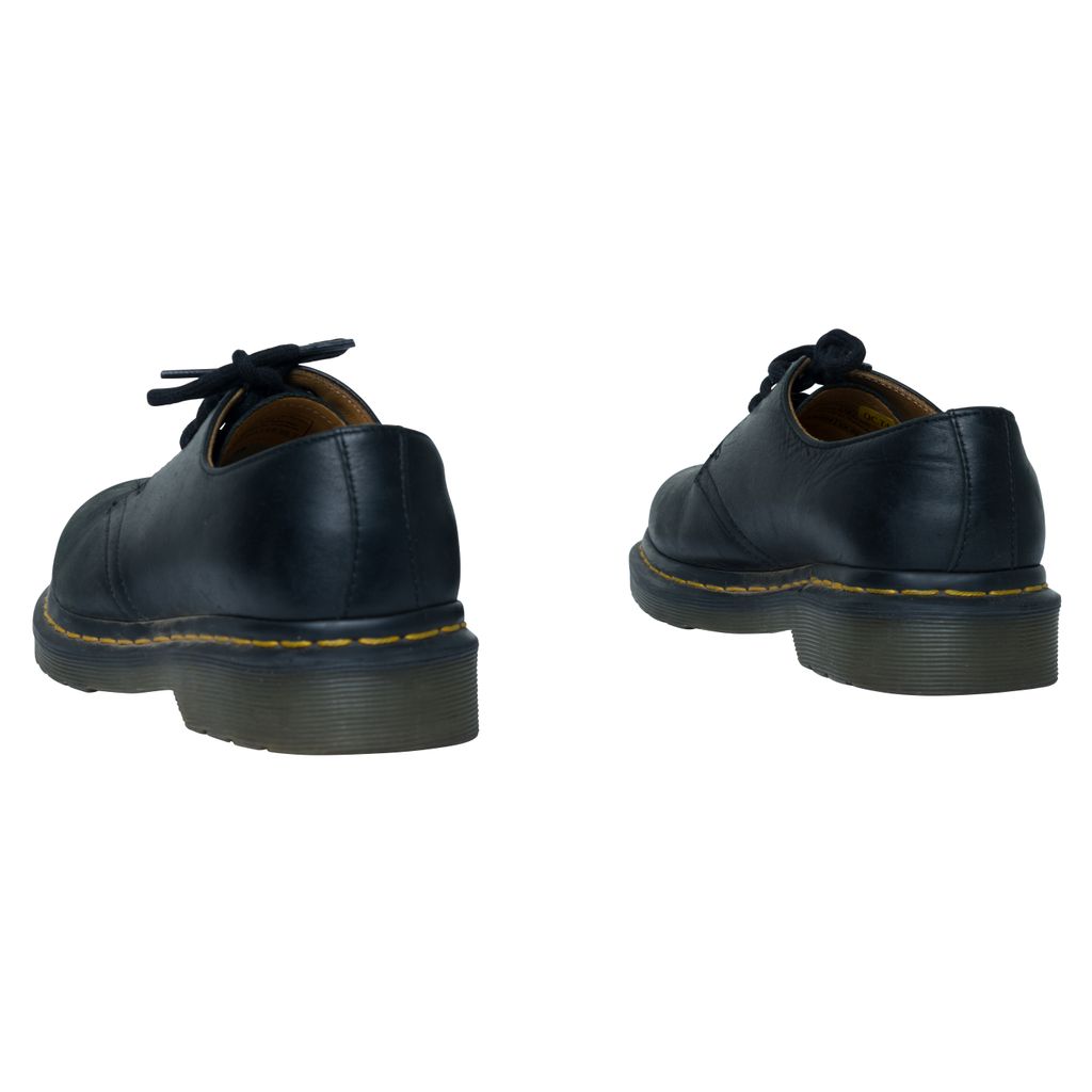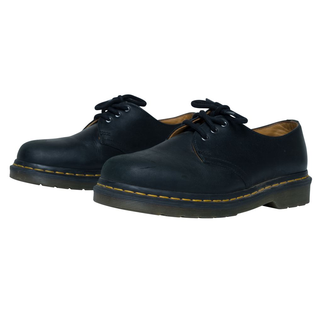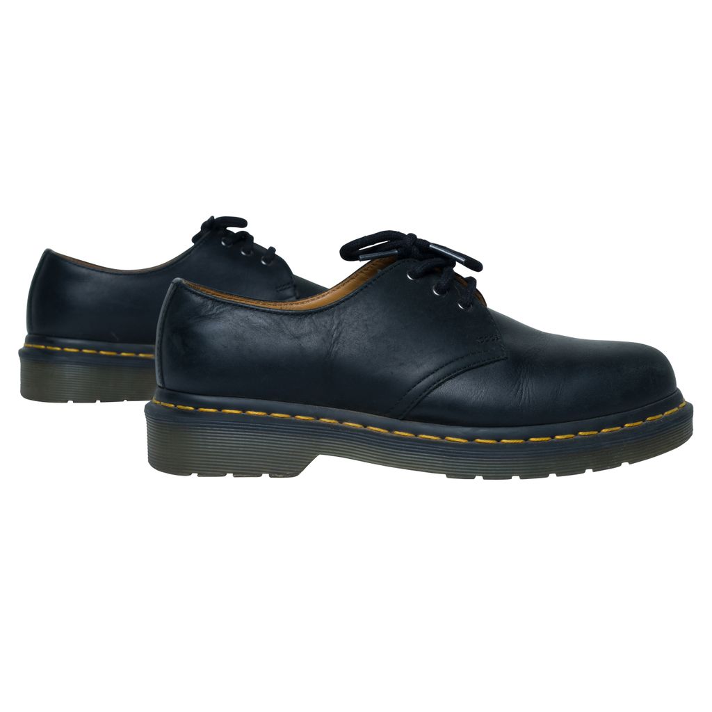 Dr. Martens 1461 Smooth Leather Oxford Shoes features tonal three-eye lace up closure, buffed leather lining in tan, and PVC sole.