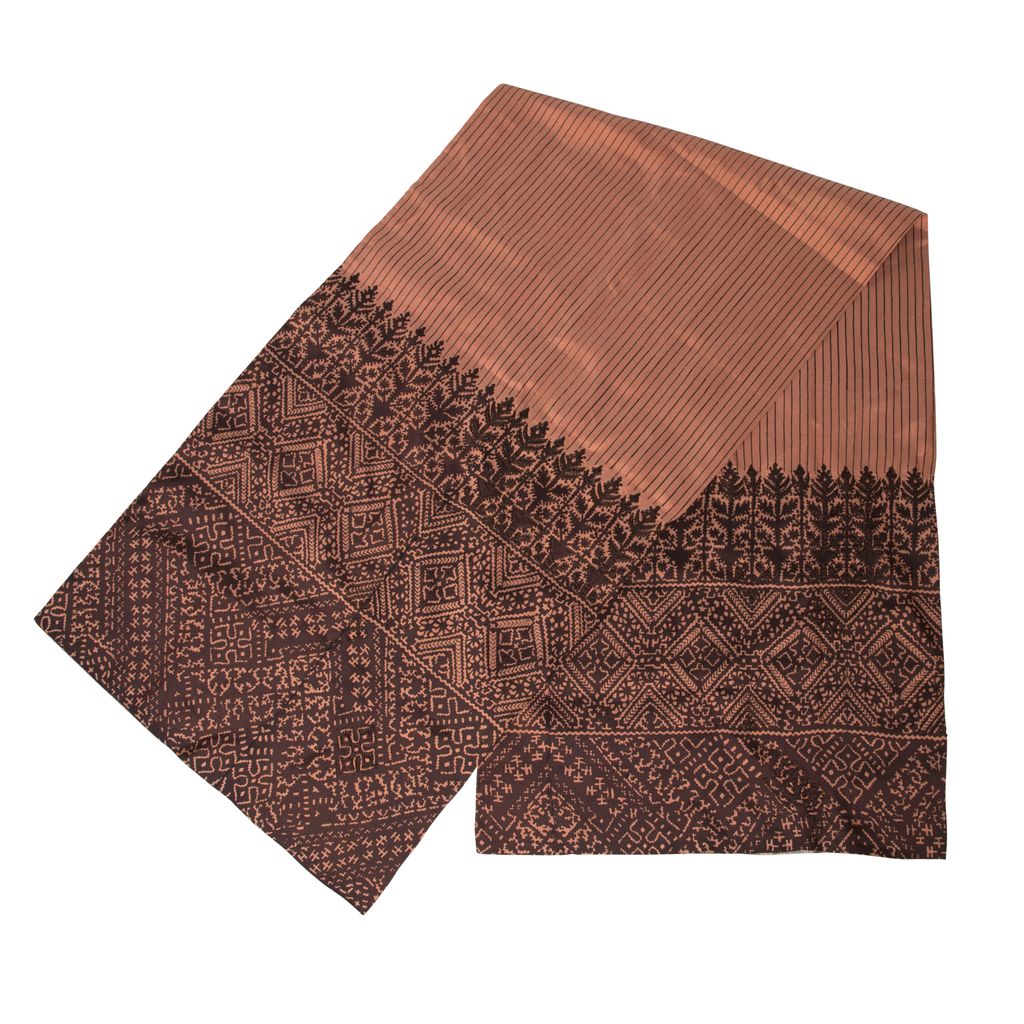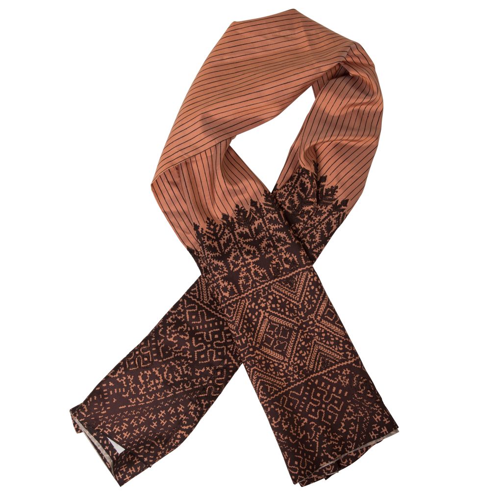 Dries Van Noten orange and brown silk scarf features pinstripe pattern and detailed embroidering.