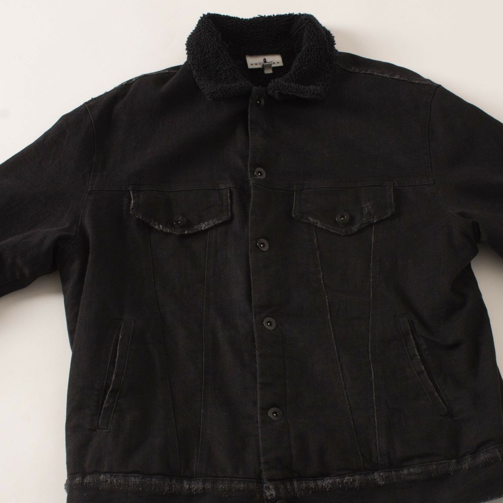 Equal parts fashion and function, this jacket is a great fall piece. All black dye job throughout. Features minimal distressing and front pockets.