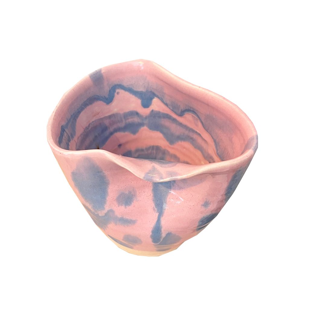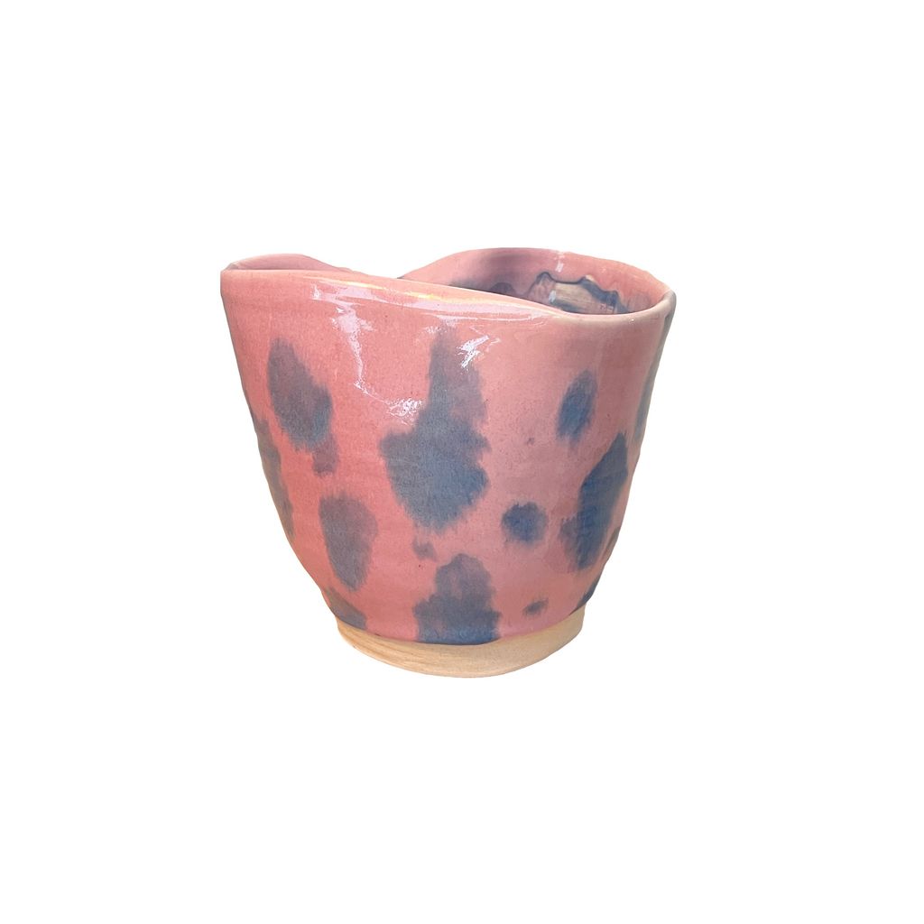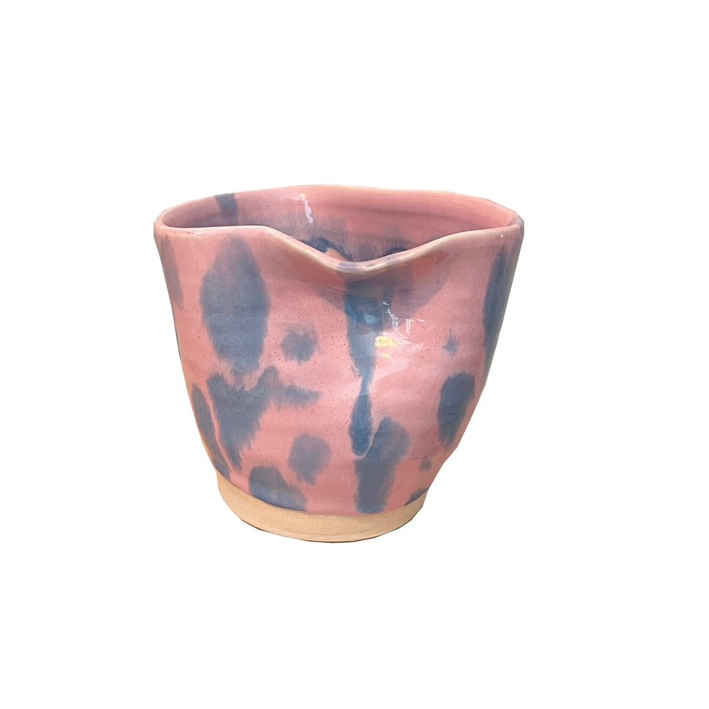 Handmade asymmetrical vase with pink/periwinkle drip glaze
