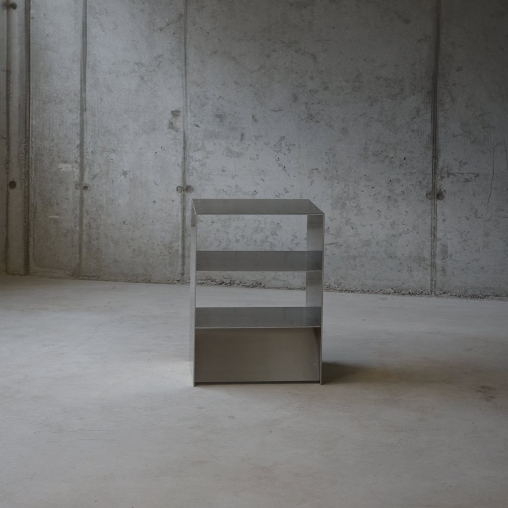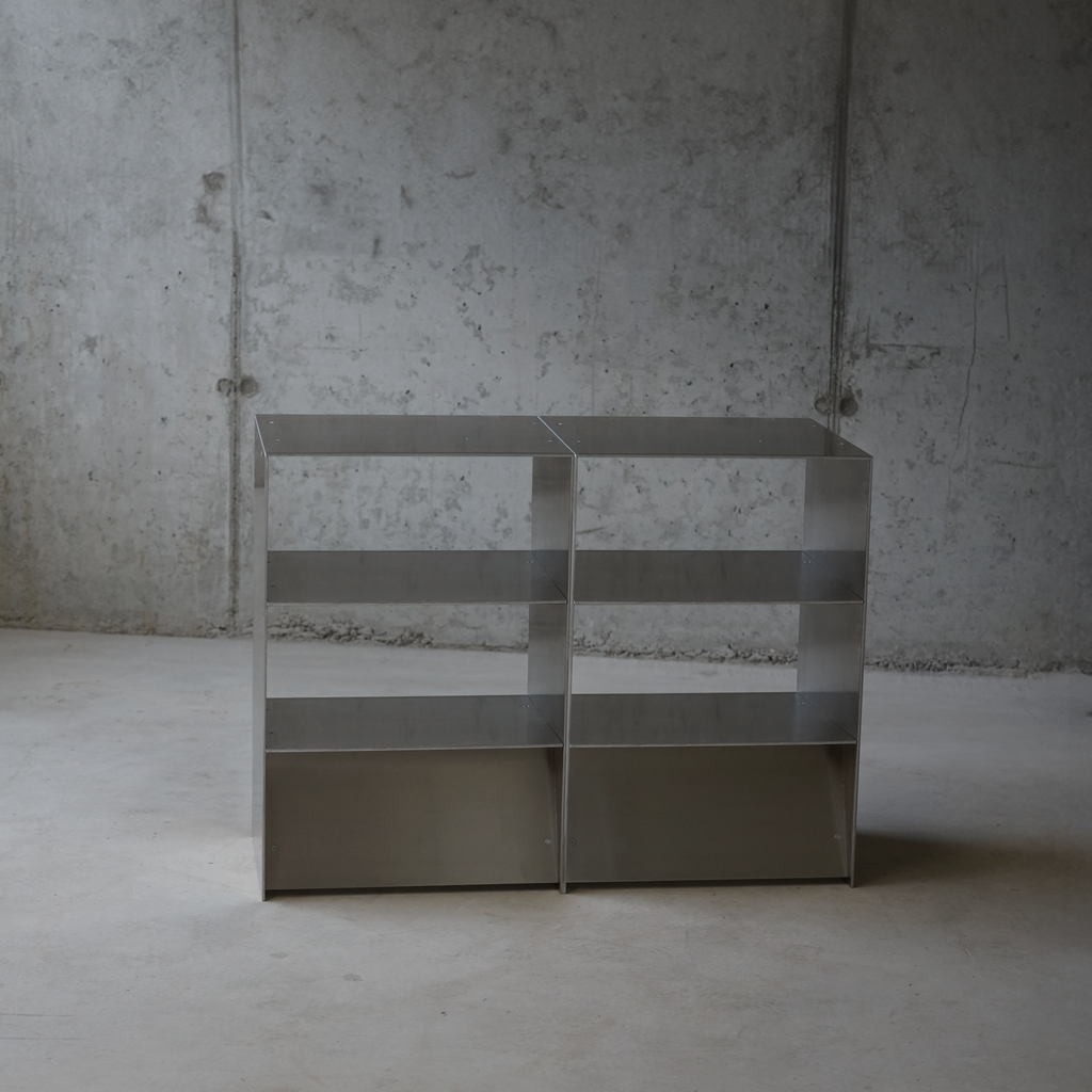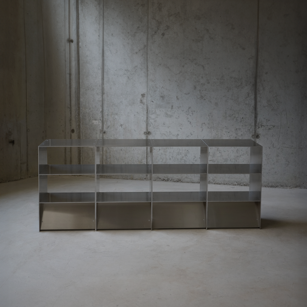 Handmade in our atelier near Berlin from durable aluminum. Designed as a modular system: use individually as a bedside table or combine multiple units to create consoles, shelving walls, or room dividers.